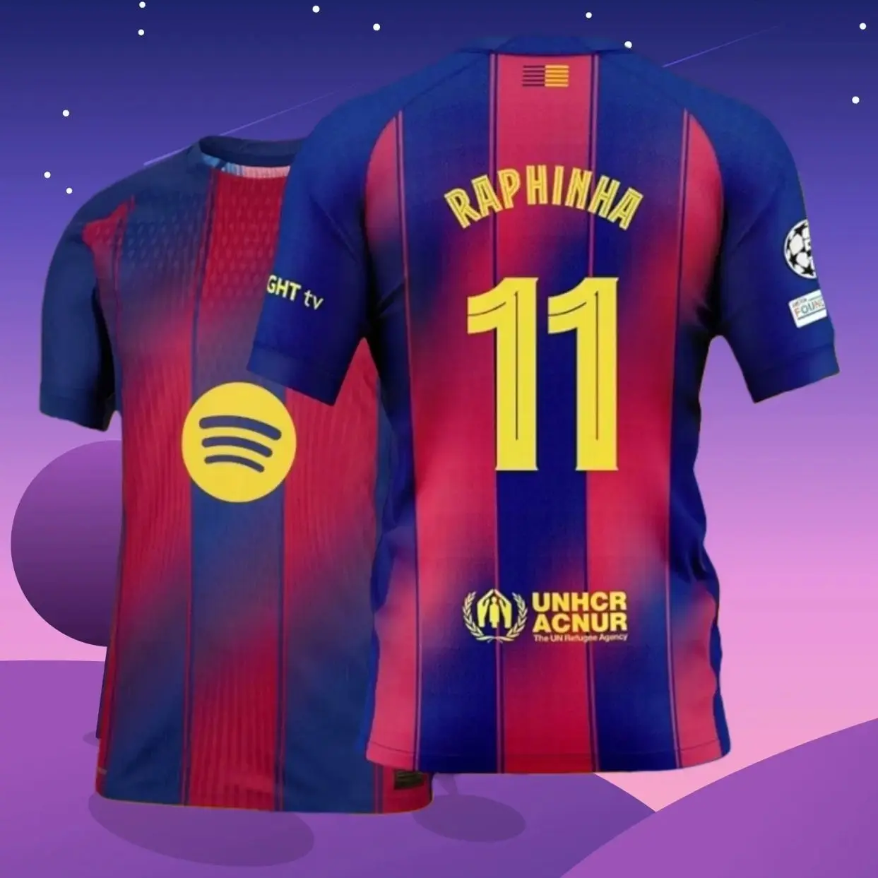 25 26 Home Red And Blue 11# Raphinha Short Sleeve Soccer Jersey Fans Version 2