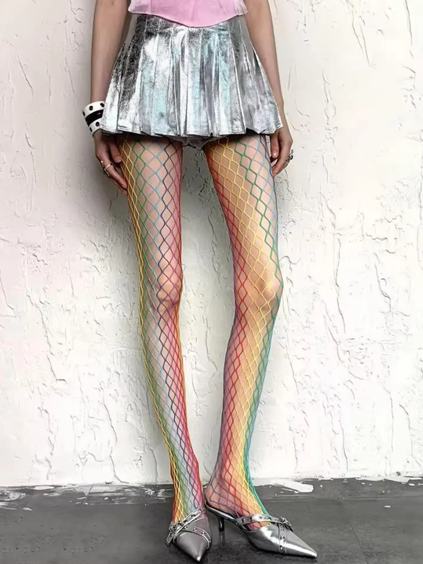 Large Mesh Rainbow Gradient Design, Visual Leg Shape Correction, Bold Style Directly Captures Attention, Perfect for All Occasions
