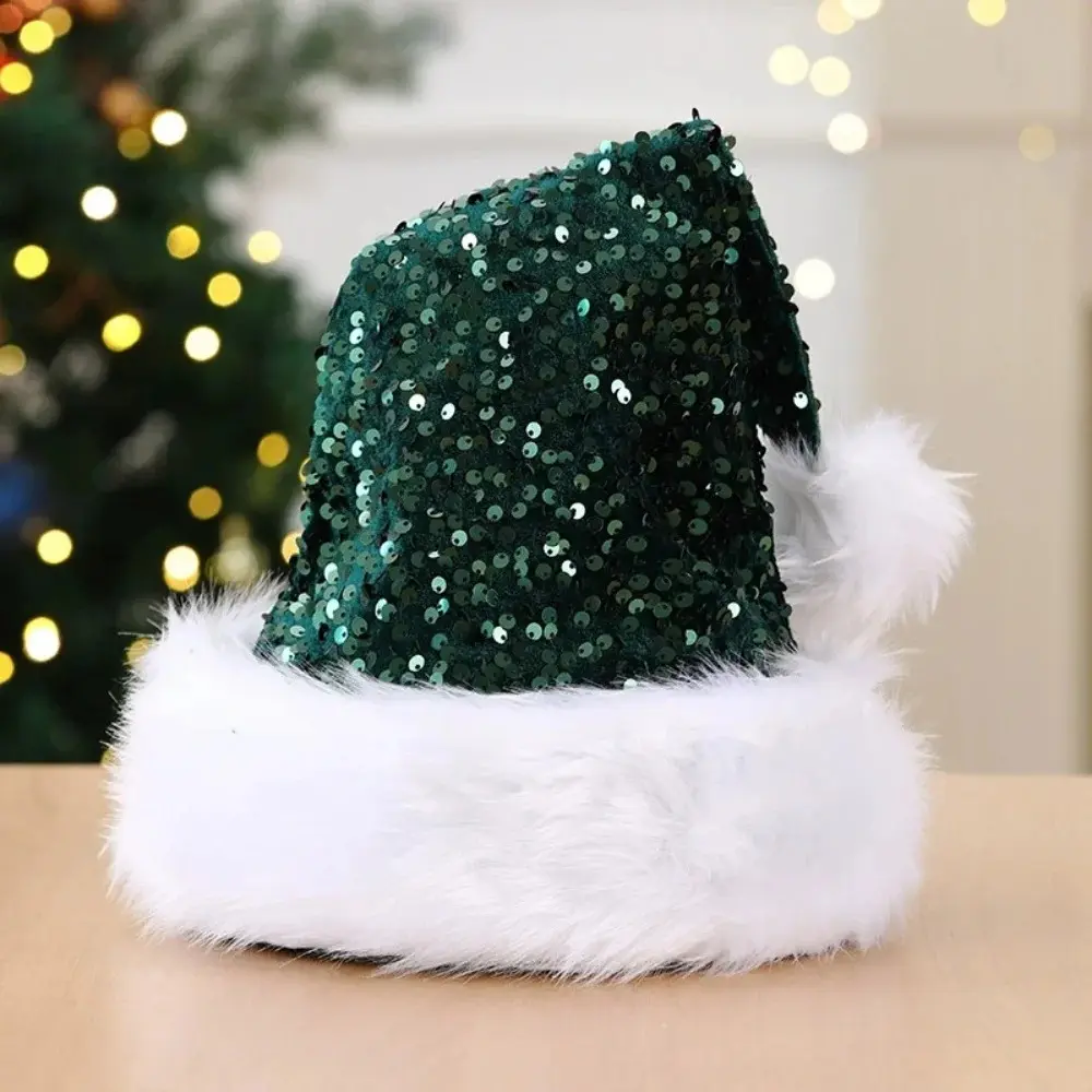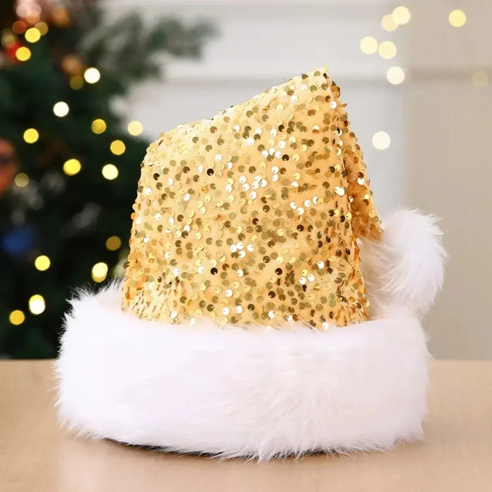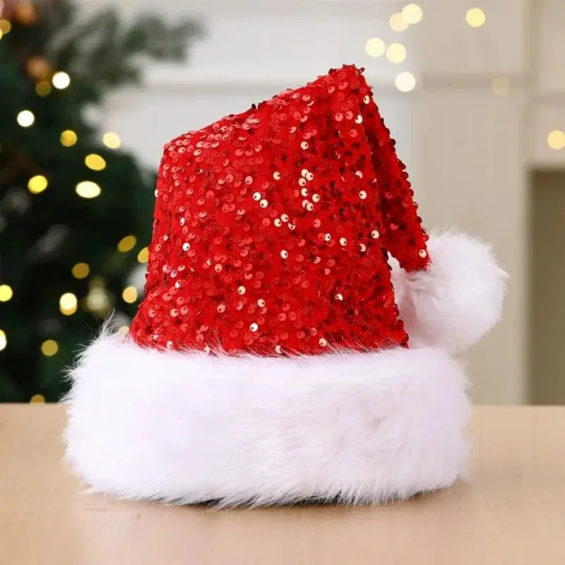 Add a touch of sparkle to your festive celebrations with our Double Layer Sequin Christmas Hat!Designed to create a joyful atmosphere, this hat has a sparkling sequin outer layer that catches the light with every turn, making you the star of your Christmas party.Made from a plush, soft material, the hat is both thick and warm to keep you out of the cold and bring cosiness to cold winter nights.The oversized and elongated design makes it suitable for both adults and children, providing universal appeal for family gatherings or festive events.Whether you're attending a Christmas parade, hosting a holiday party, or taking part in some merrymaking, get in the holiday spirit by wearing this adorable holiday accessory.