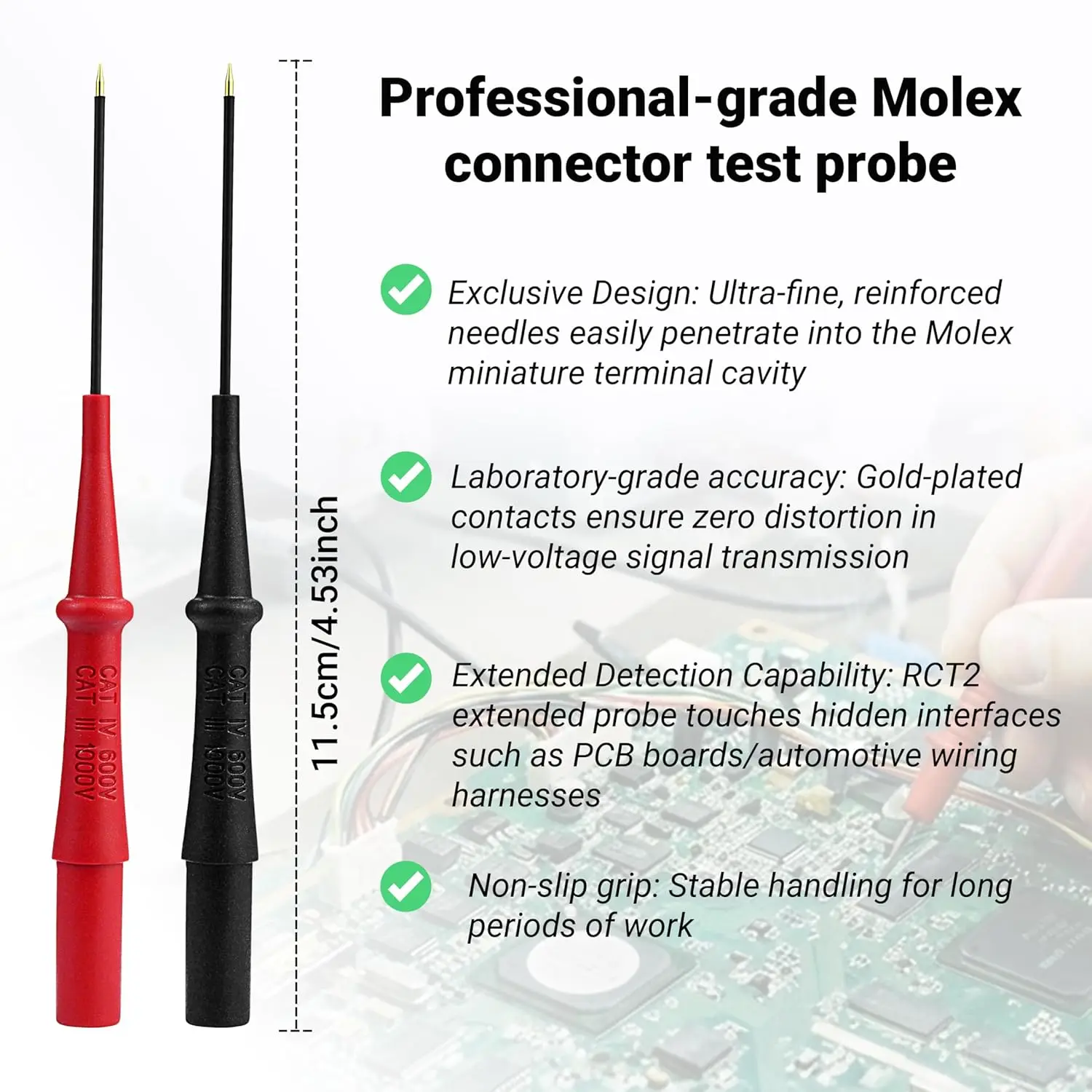 ✅PRECISION MICRO-PROBES *0.8mm Gold-Plated Tips* for accurate signal measurement in Molex, JST, and AMP micro-connectors – designed for circuit boards where generic probes fail.