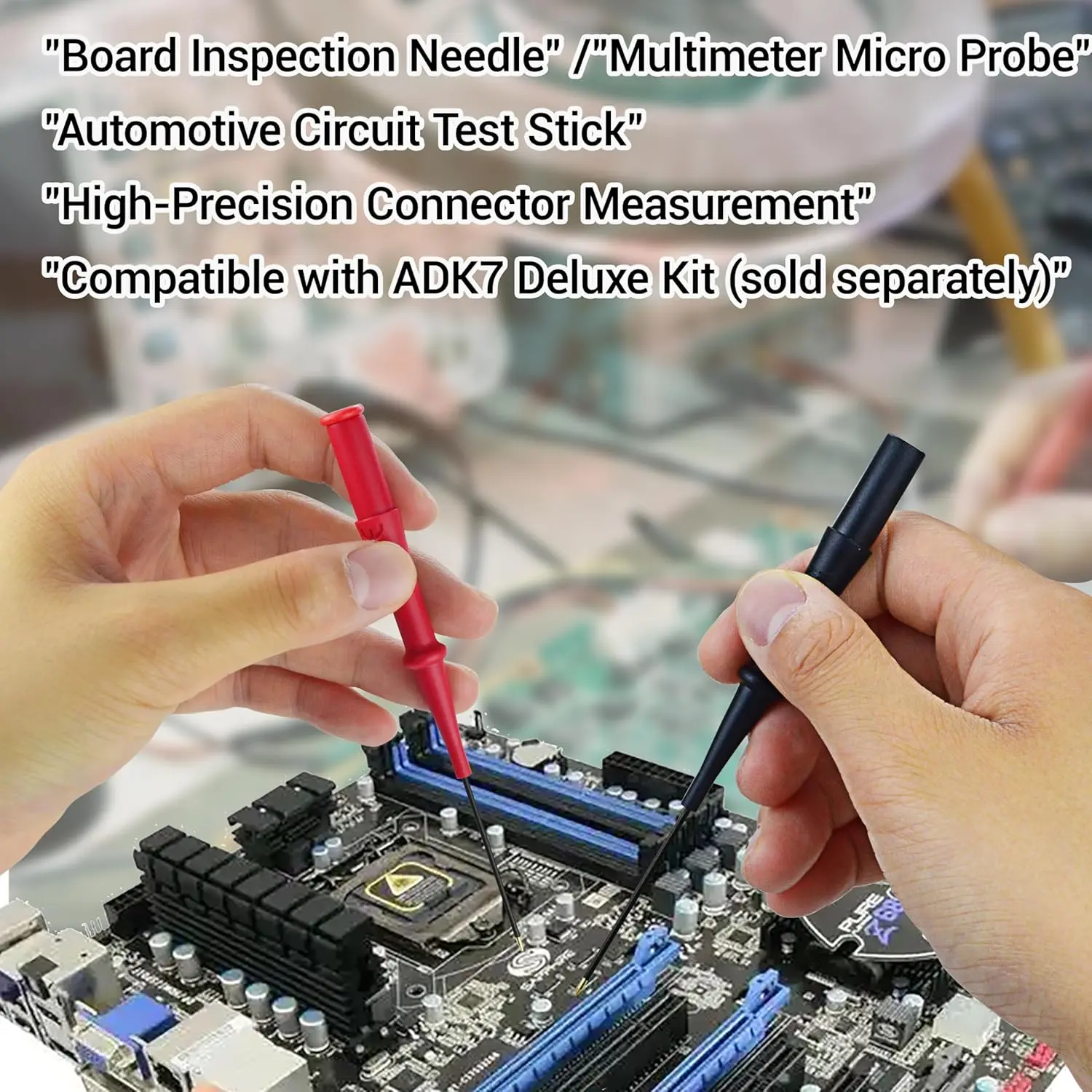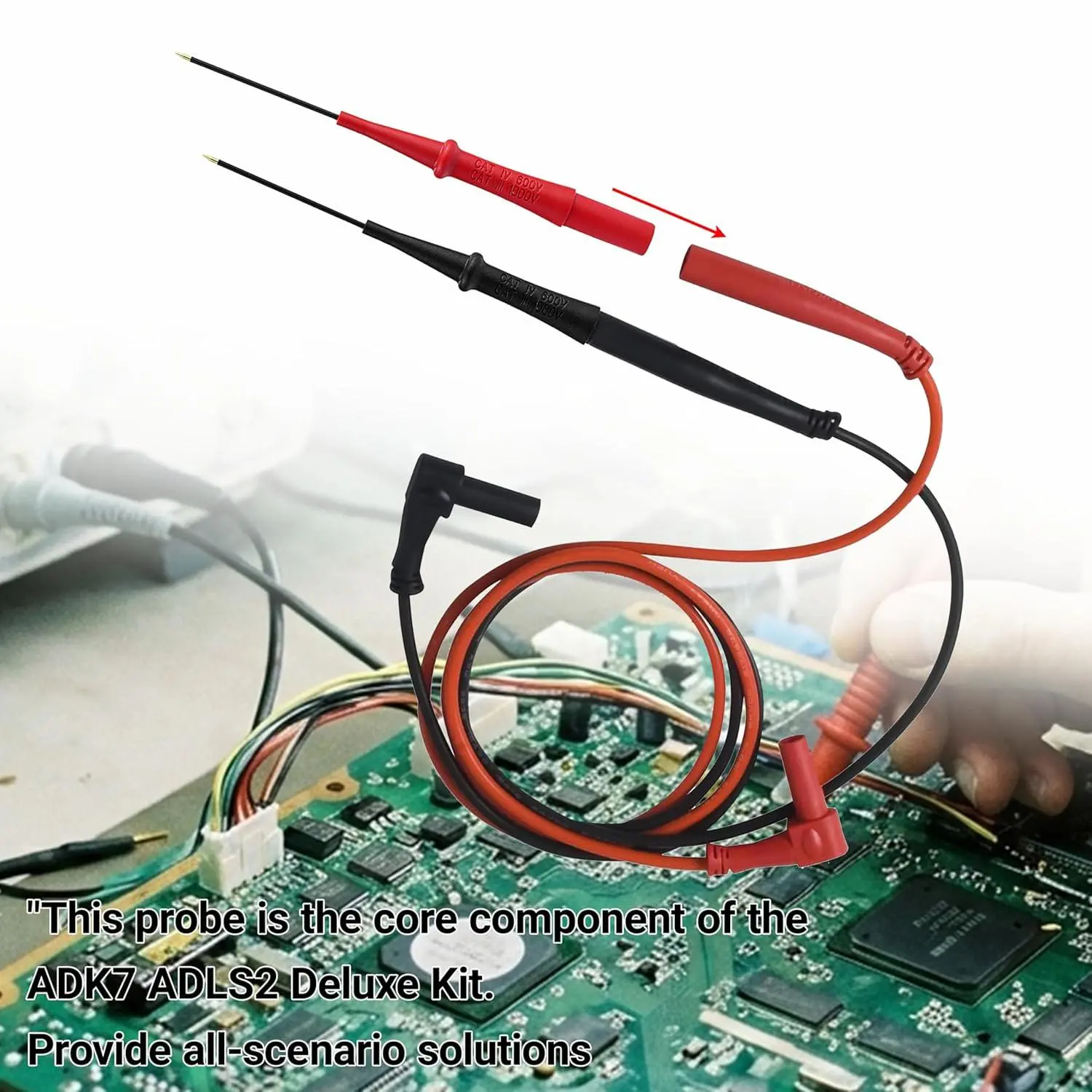 ✅ENGINEER-GRADE DURABILITY Reinforced needle shafts withstand 10,000+ insertions into tight terminals.*IEC 61010-031 CAT III 300V safety rated* when used with ADK7 silicone leads.