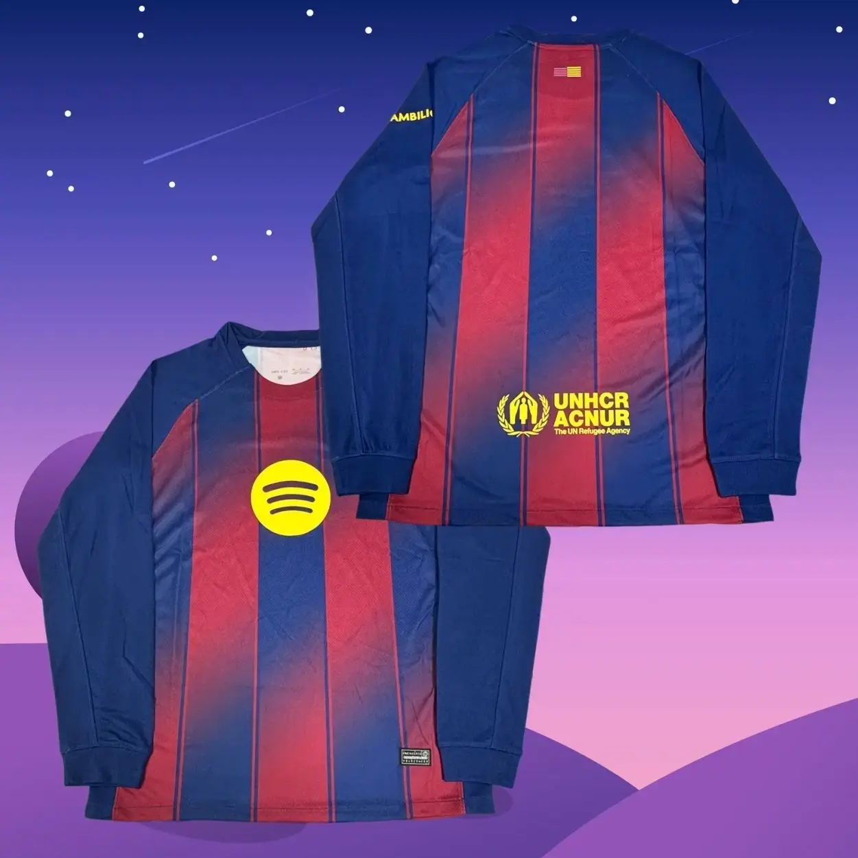 25 26 Home Red And Blue Long Sleeve Soccer Jersey Fans Version 8