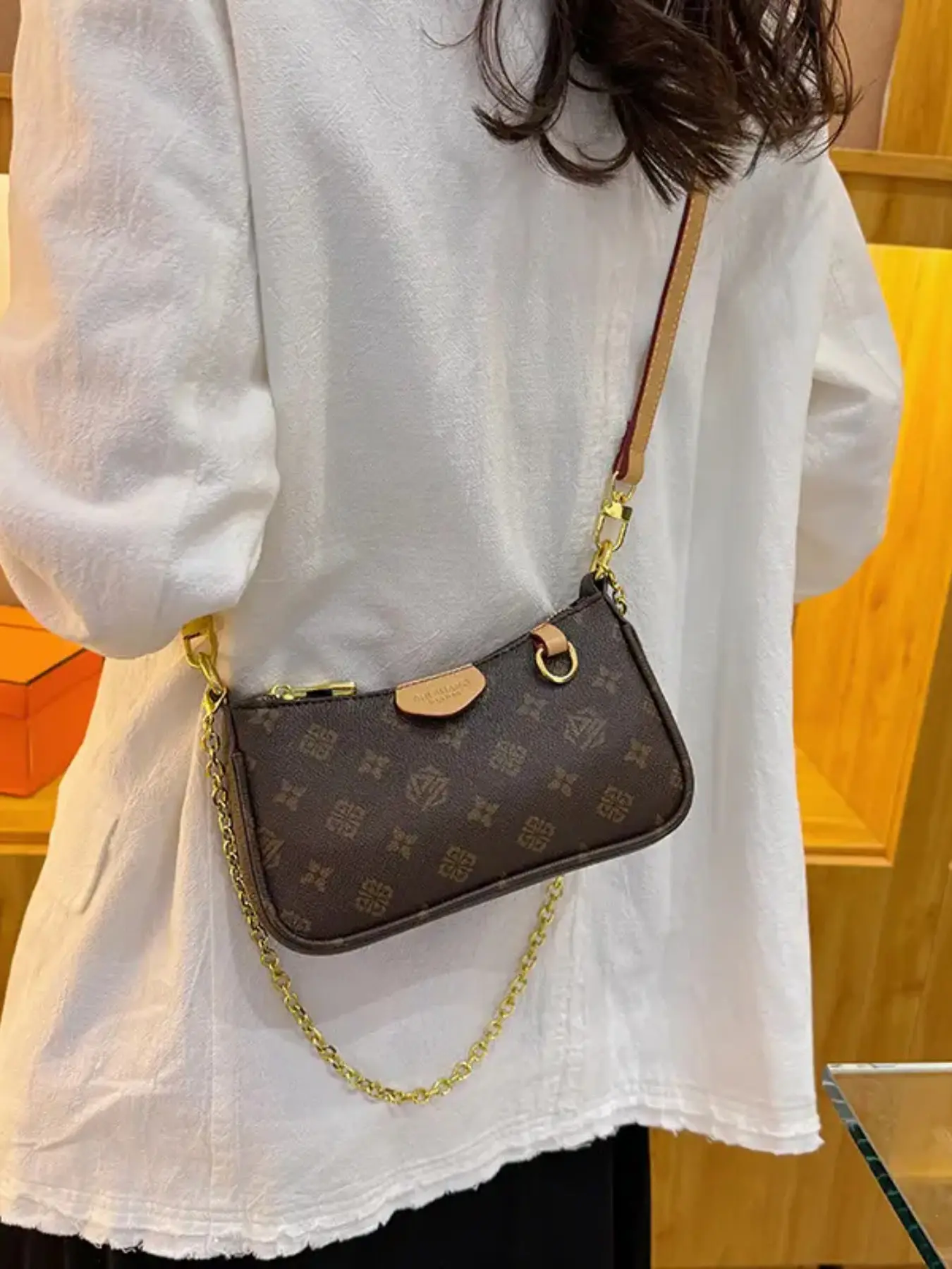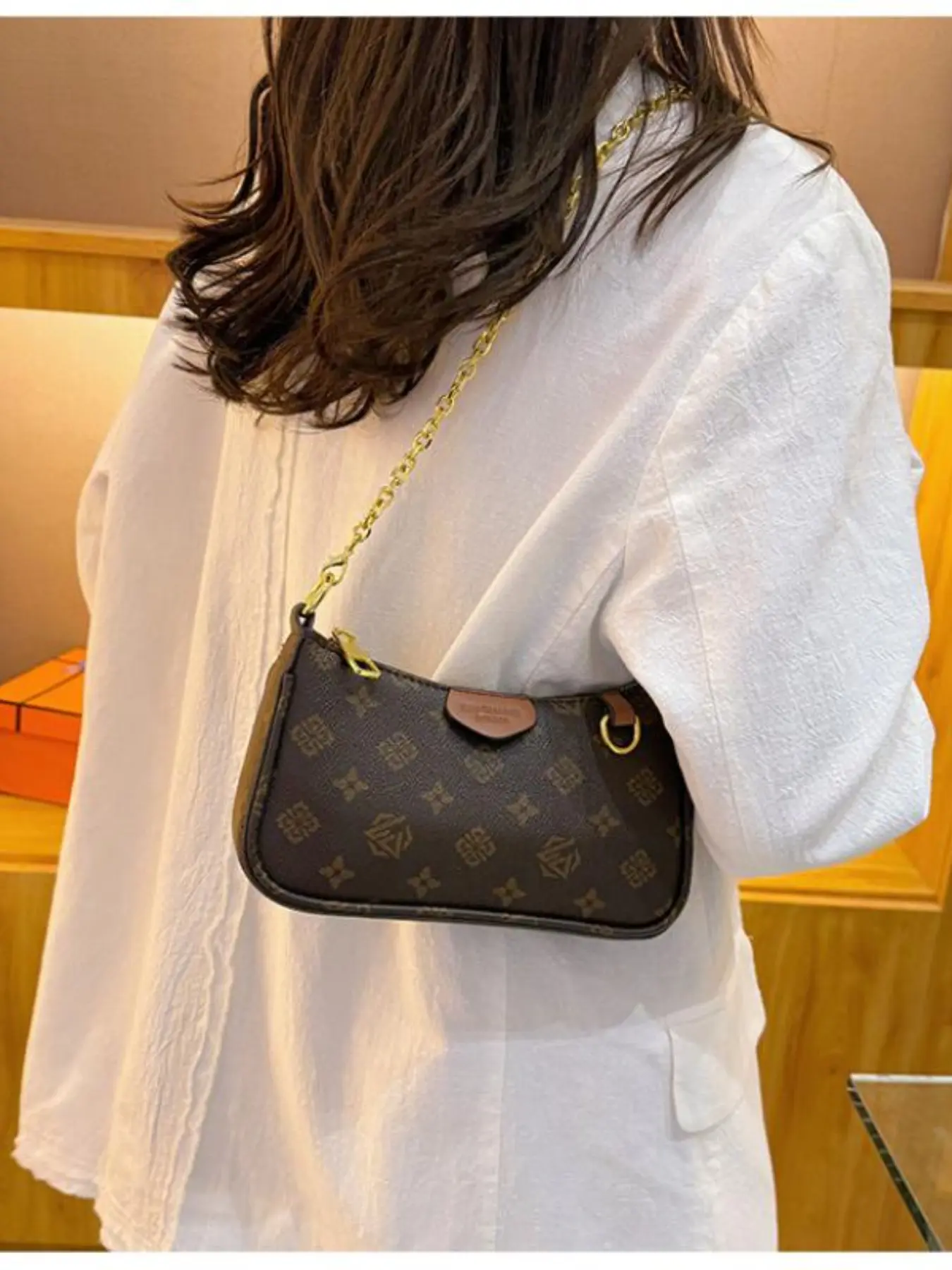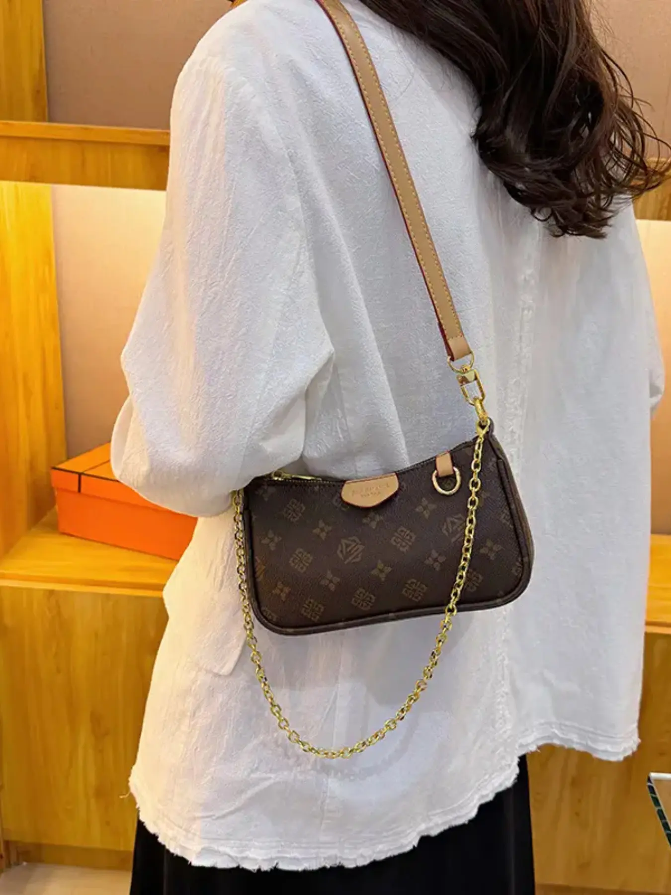 Women's Fashion Bag, Vintage Print Chain, Small Square Bag, Shoulder Bag, Crossbody Bag, Daily Bag, Leather Satchel