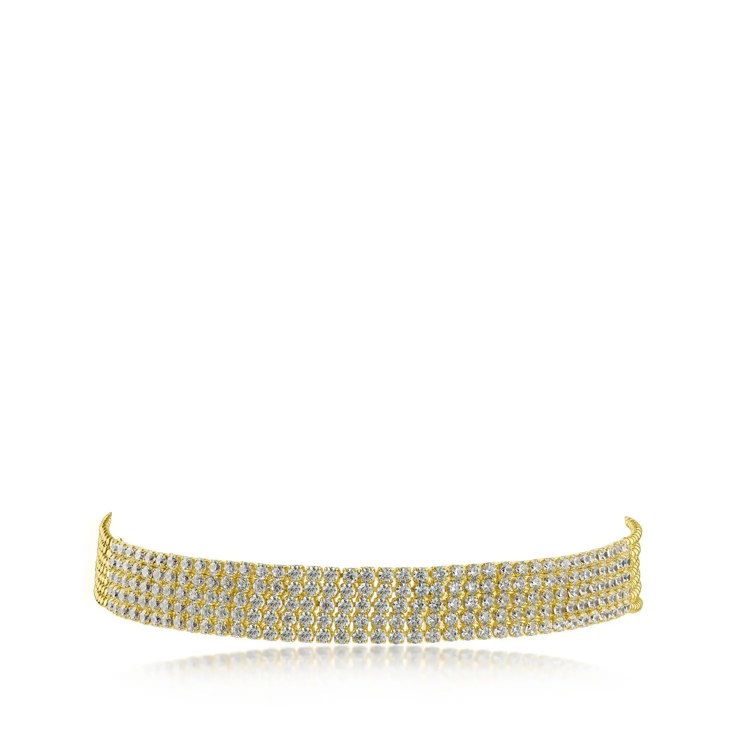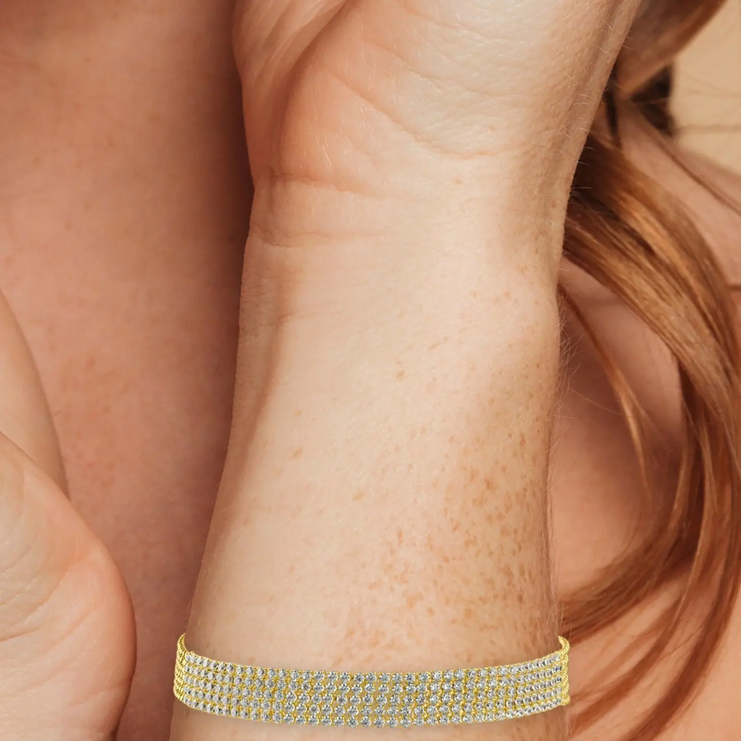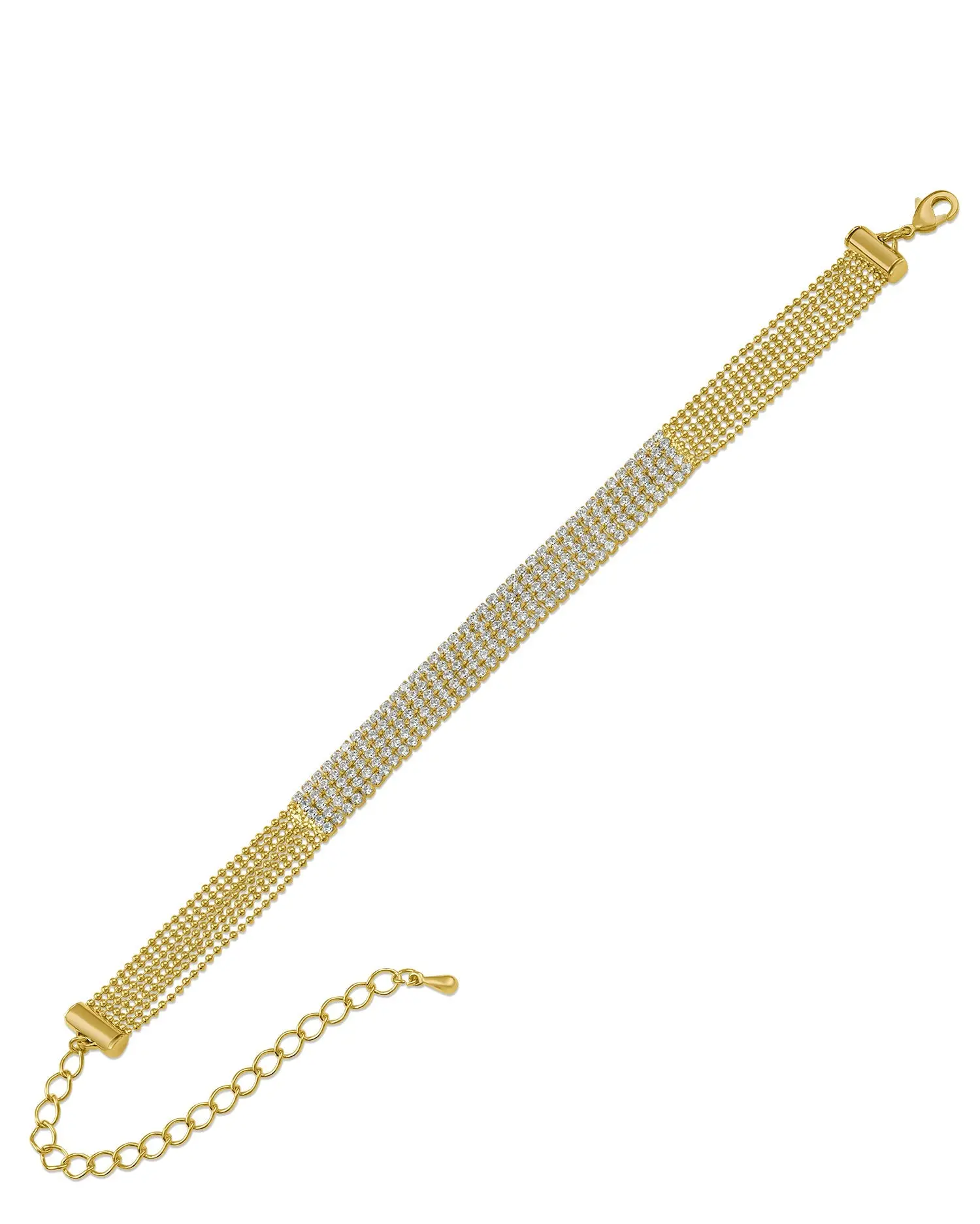 3 cttw Round Micro Pave Cubic Zirconia multi row bracelet with shot bead chain. Set in Gold plated brass.