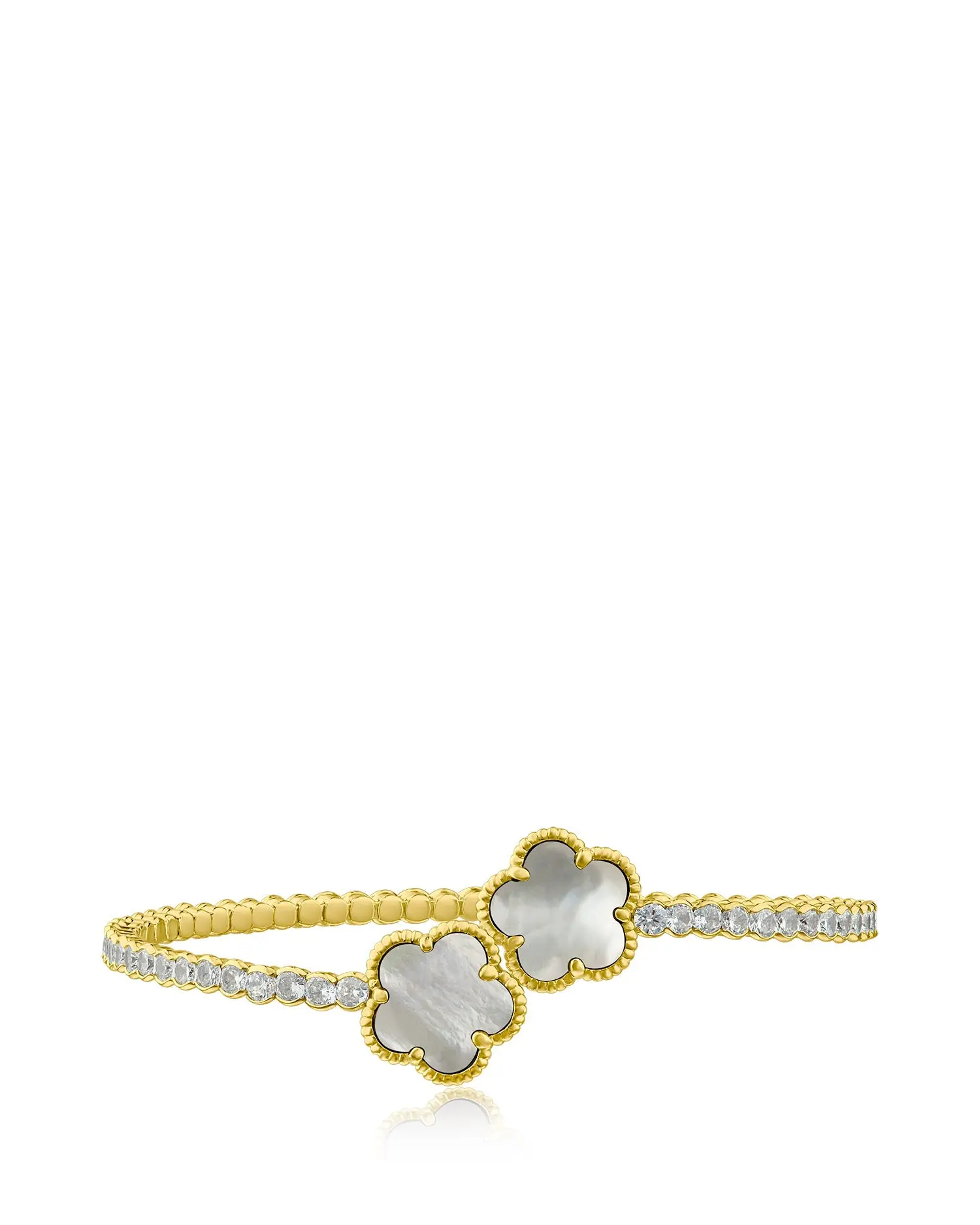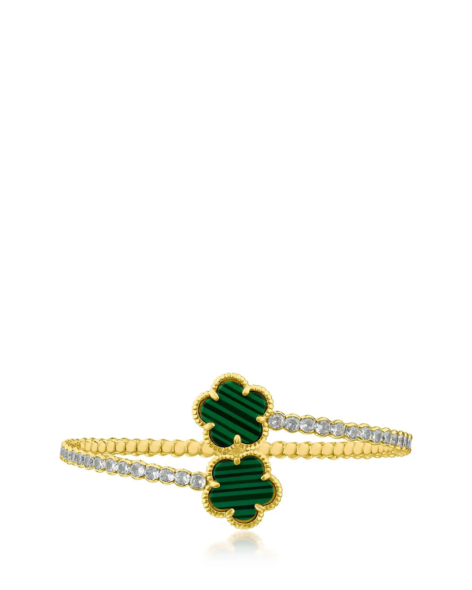 Add a touch of elegance and glamour to your accessory collection with this 9 cttw Pave Cubic Zirconia wrap bracelet featuring a double resin clover accent. A stunning addition to any outfit, carefully crafted with gold plated brass.
