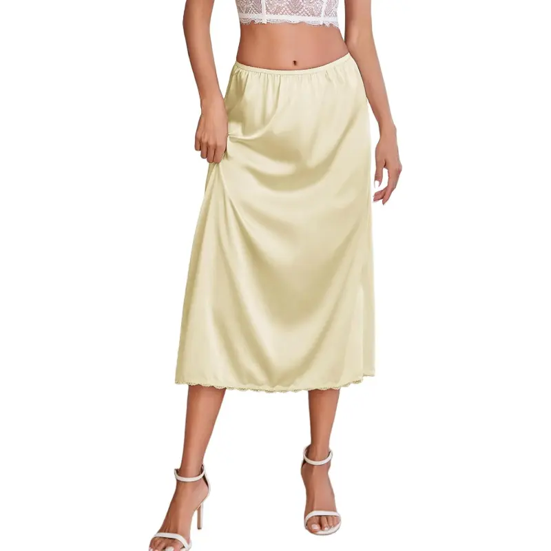 Women's Satin Half Slip 36" Lace Long Underskirt S-XXL