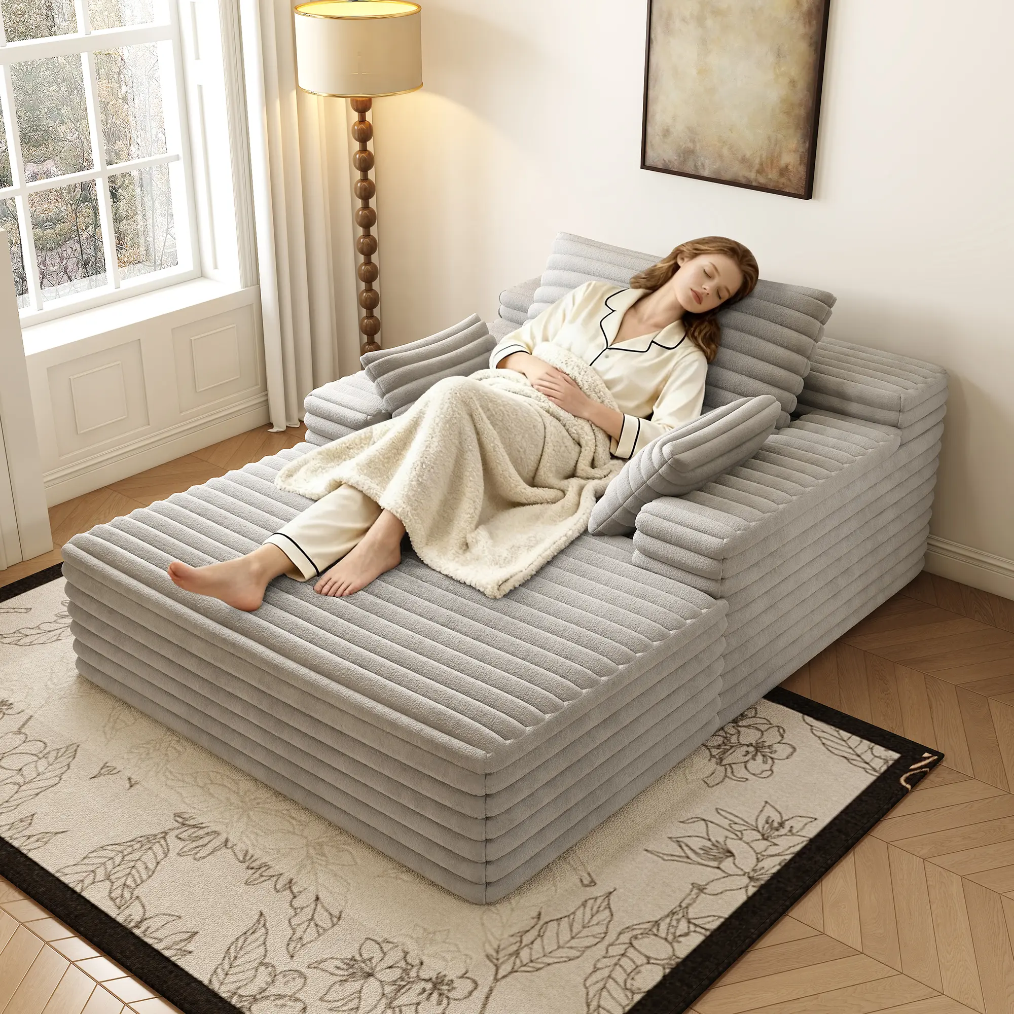 ·No Need to Install - Unboxing the large chaise lounge is as simple as it gets—no assembly needed. Just give it a light tap once you've taken it out of the packaging, and chaise chair will gradually bounce back to its original shape within 48 hours. So it is not so fluffy and comfortable when you just unpacked it, you can pat the cushion to make it fluffy and feel better. Our chaise lounge sofa oversize chair comes compactly packed in a single box for your convenience
