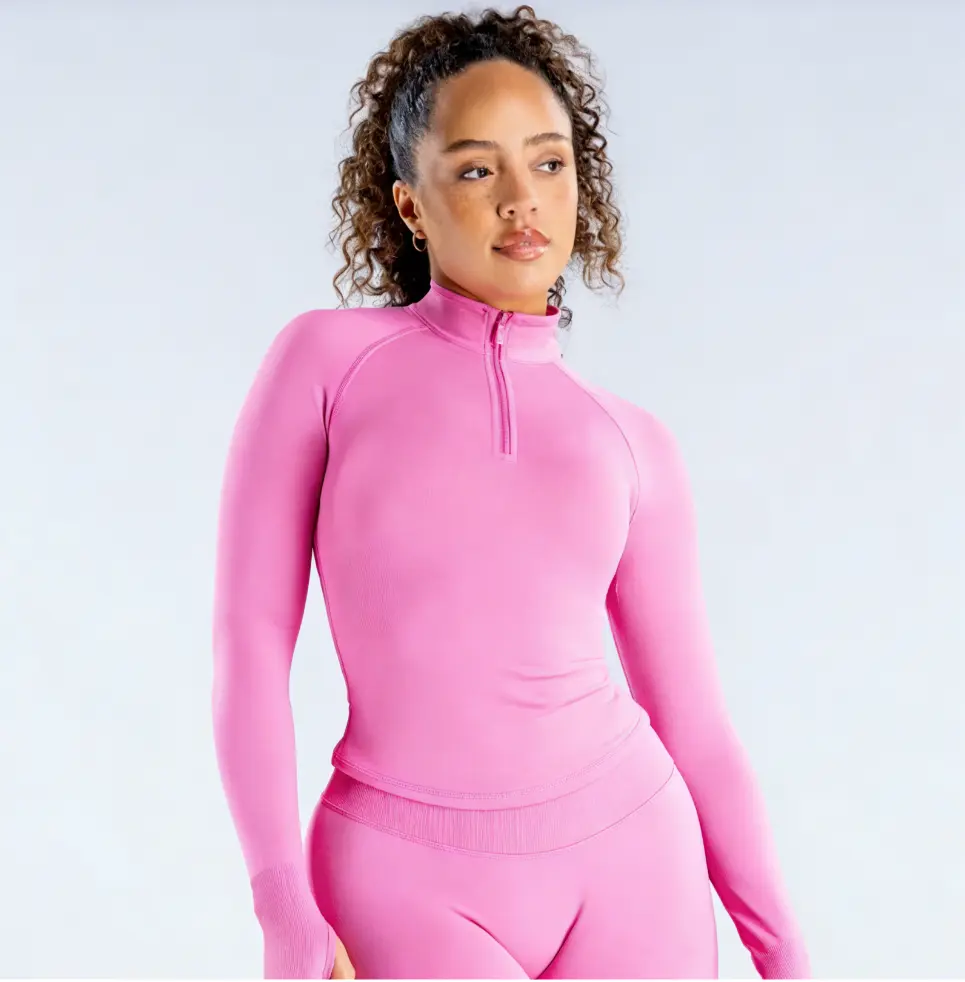 ·Half-Zip High Neck: A 1/4 zip closure at the high neck lets you adjust ventilation and coverage on the fly, keeping you comfortable during warm-ups, cool-downs, and everything in between.