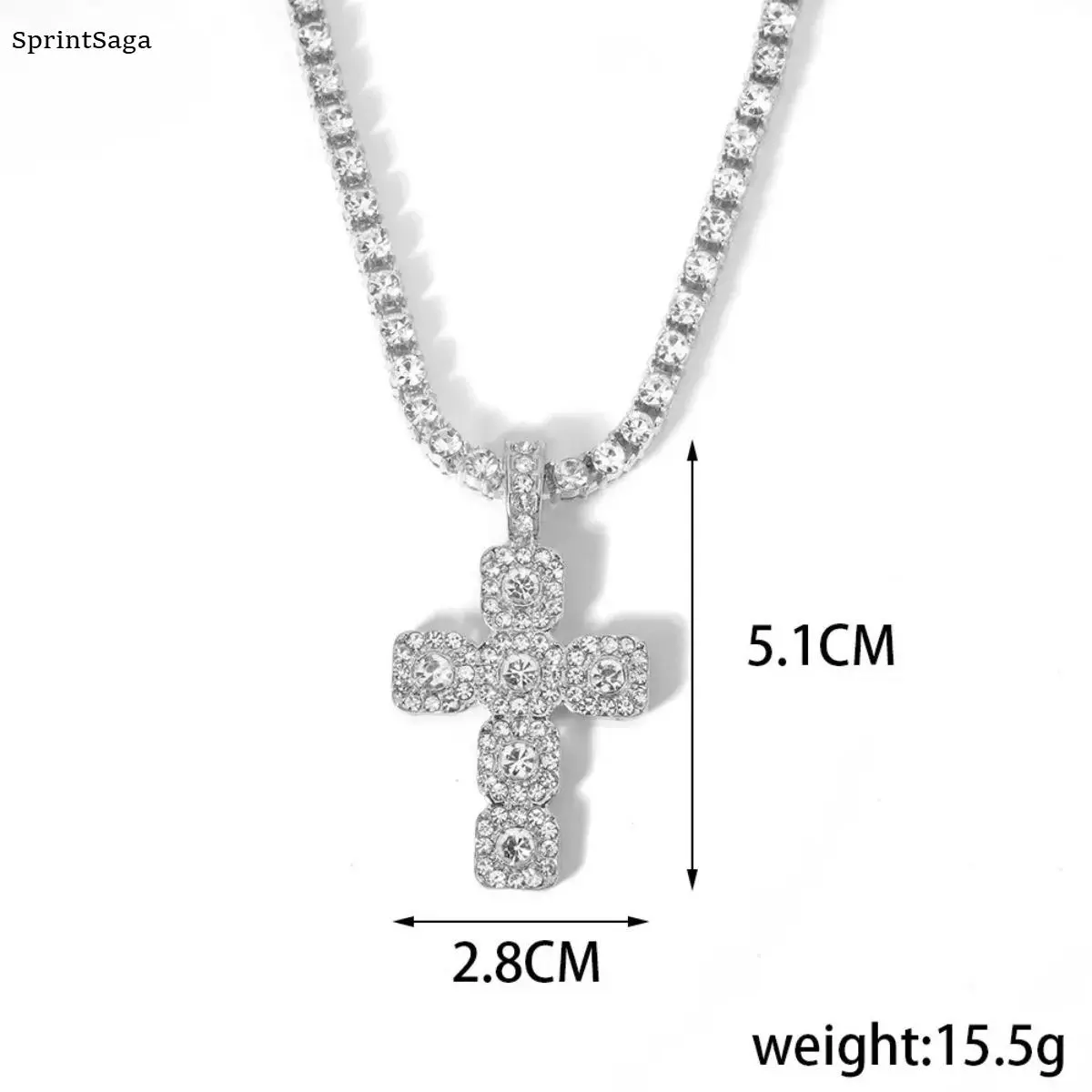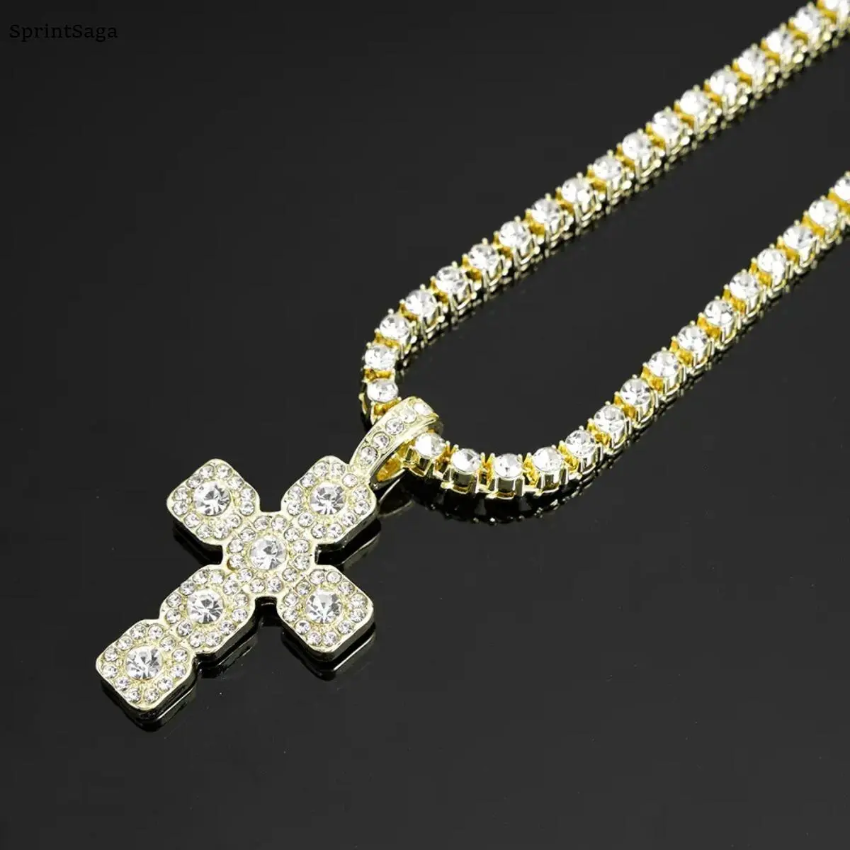 - Cross pendant set on a 4mm tennis-style chain – bold and eye-catching