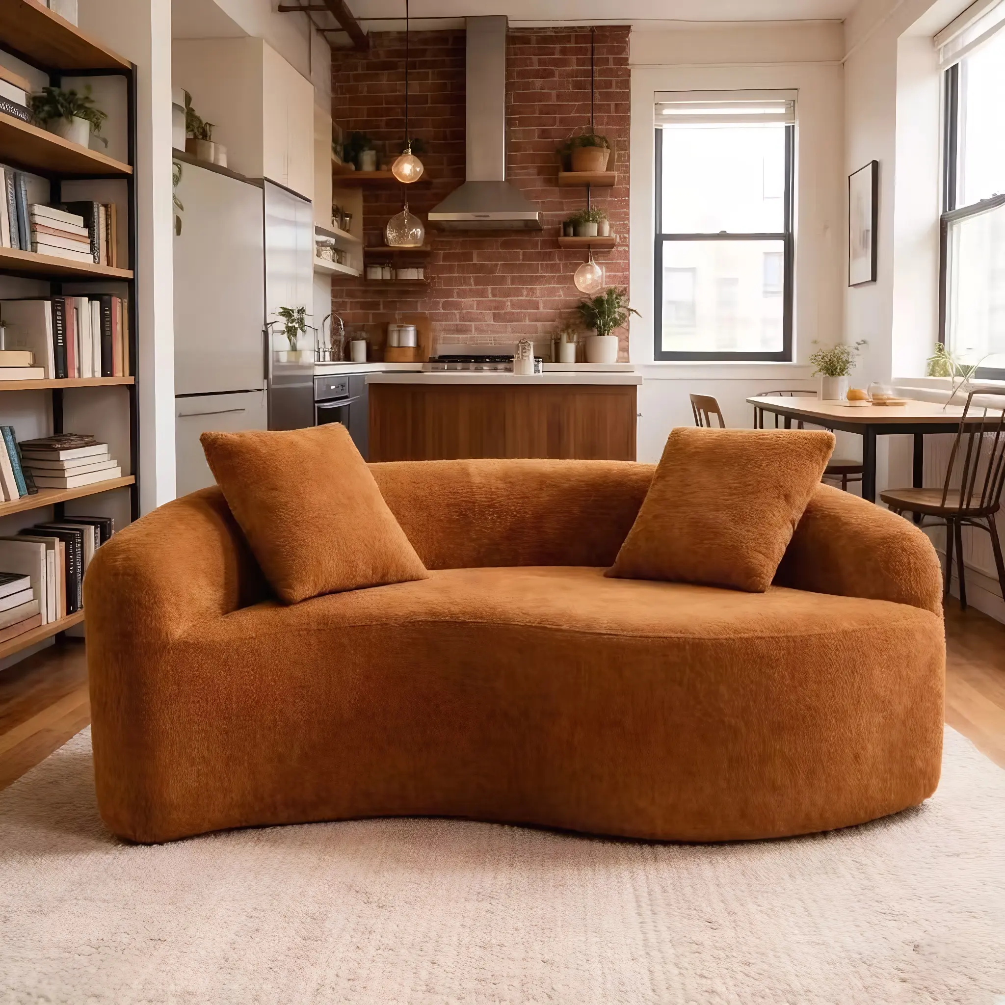 Crafted from premium chenille with high density foam, this stain resistant sofa and pet friendly couch delivers ultimate softness and durability. The modern curved sofa design forms a harmonious circular silhouette, ideal for minimalist renters, young professionals, and pet parents. Blending multi-size versatility, it elevates small-space living without compromise.