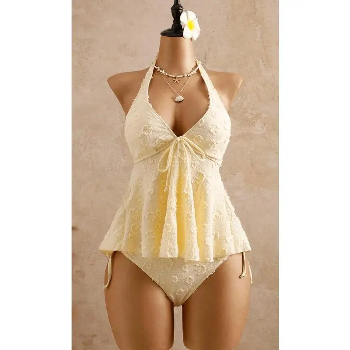 Women's tankini swimwear, stylish two-piece swimwear, comfortable beachwear, suitable for pool parties and beach vacations, tankini clothing