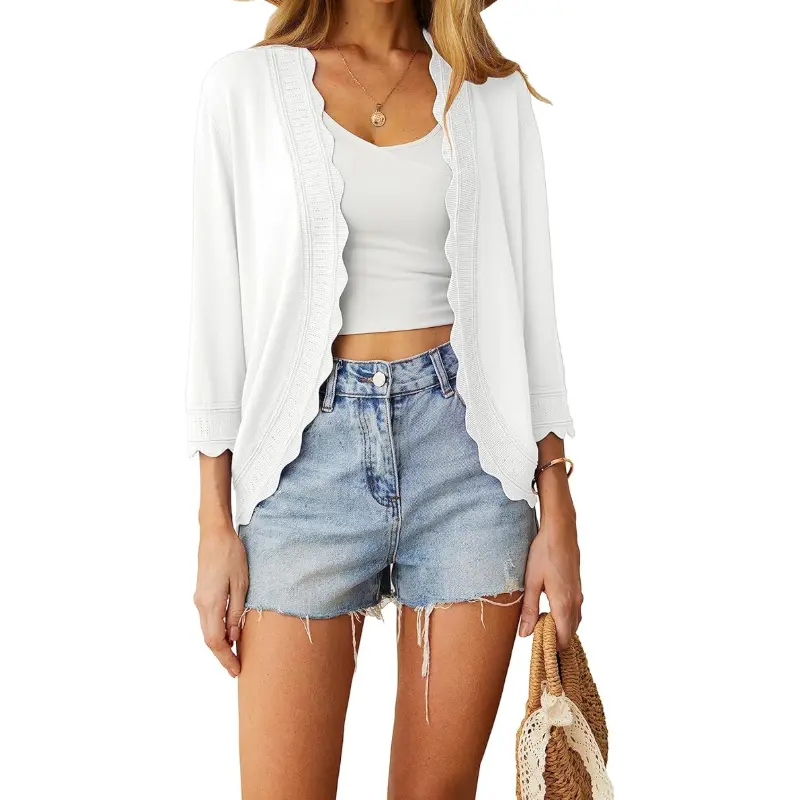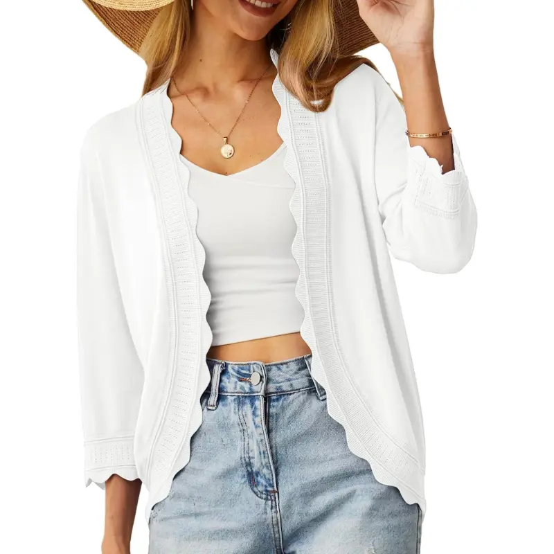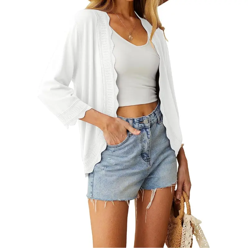 Women's 3/4 Sleeve Summer Cardigan Lightweight Casual Open-Front Cropped Shrug Sweaters