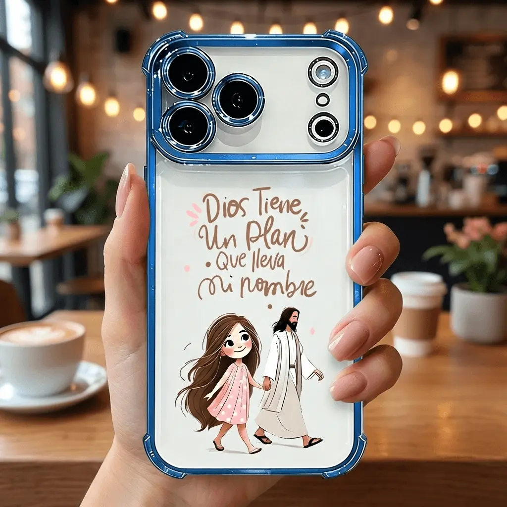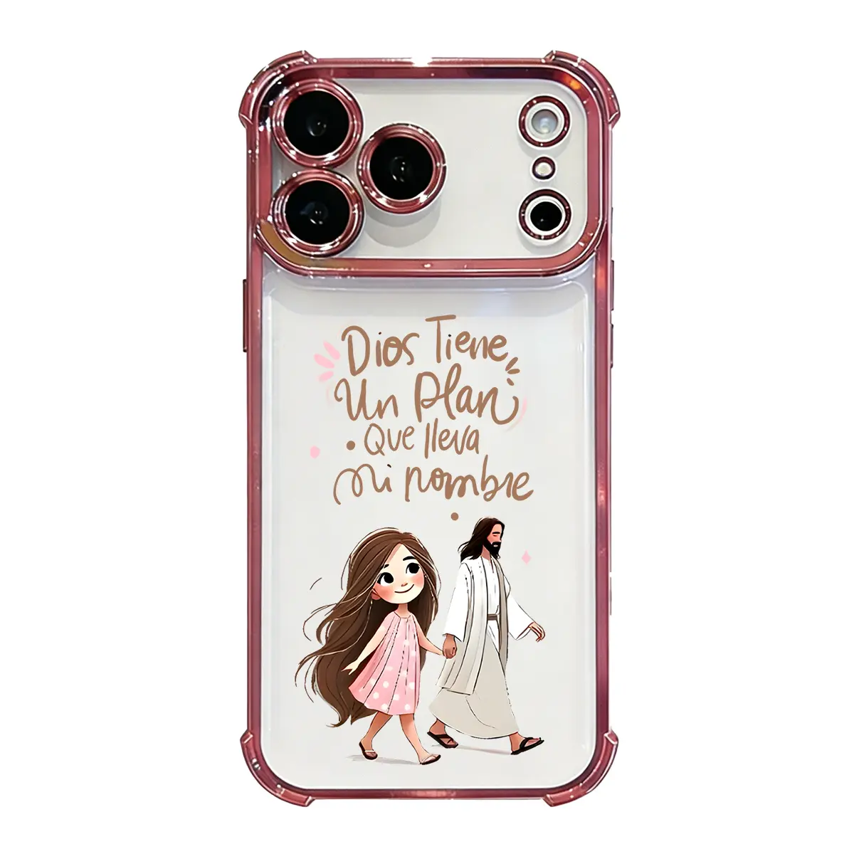 Dios Tiene Un Plan Que Lleva Mi Nombre Jesus & Girl Phone Case for iPhone 11 12 13 14 15 16 17 Pro Max Plus Air, Christian Faith Rose Gold Clear Shockproof Cover, Religious Gift for Women Girls DDSJ260404011
