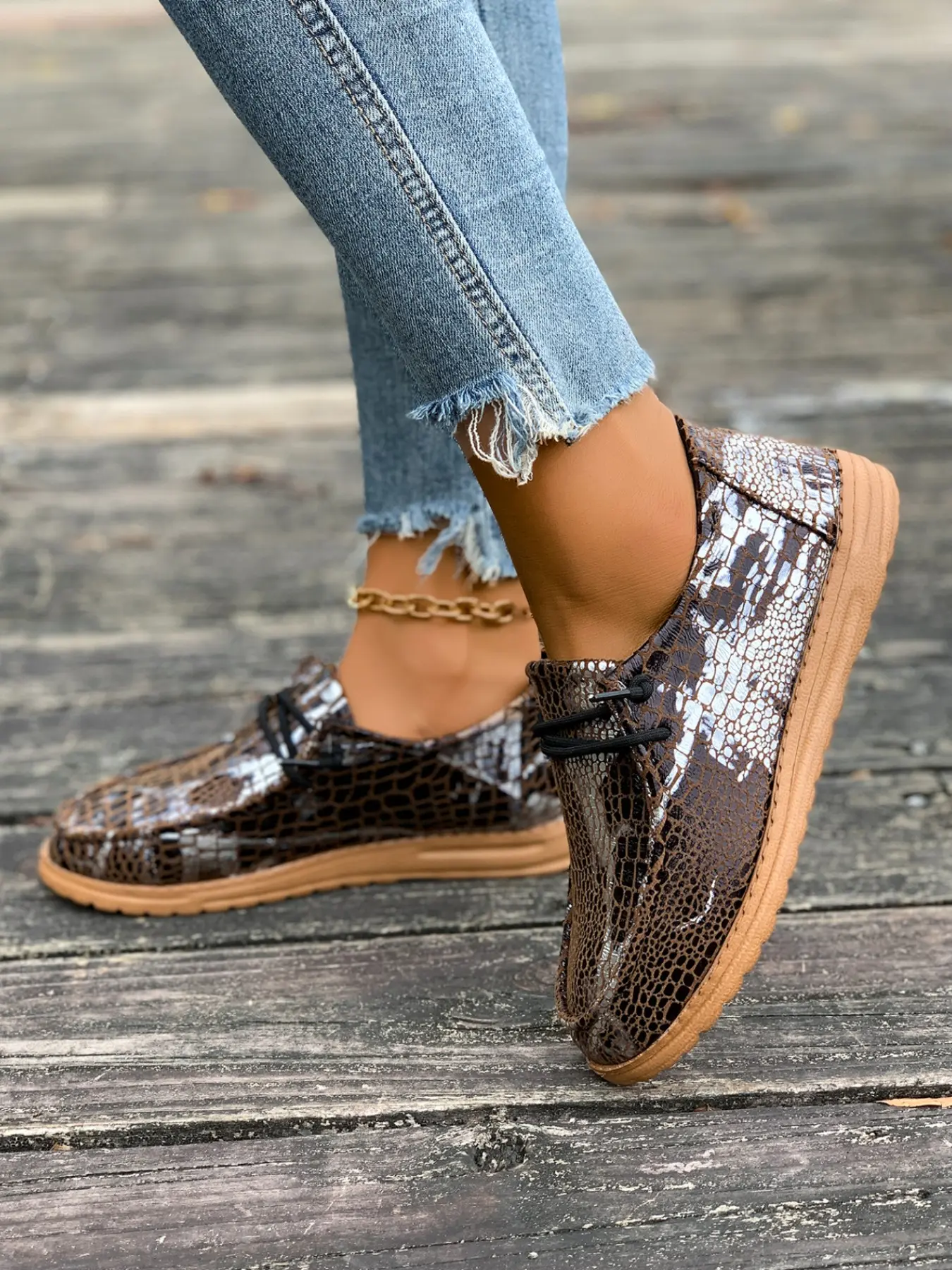 5. Women's Ethnic Style Patchwork Print Thick Sole Casual Shoes, Lace-Up Retro Versatile Loafers, Comfortable and Stylish Footwear