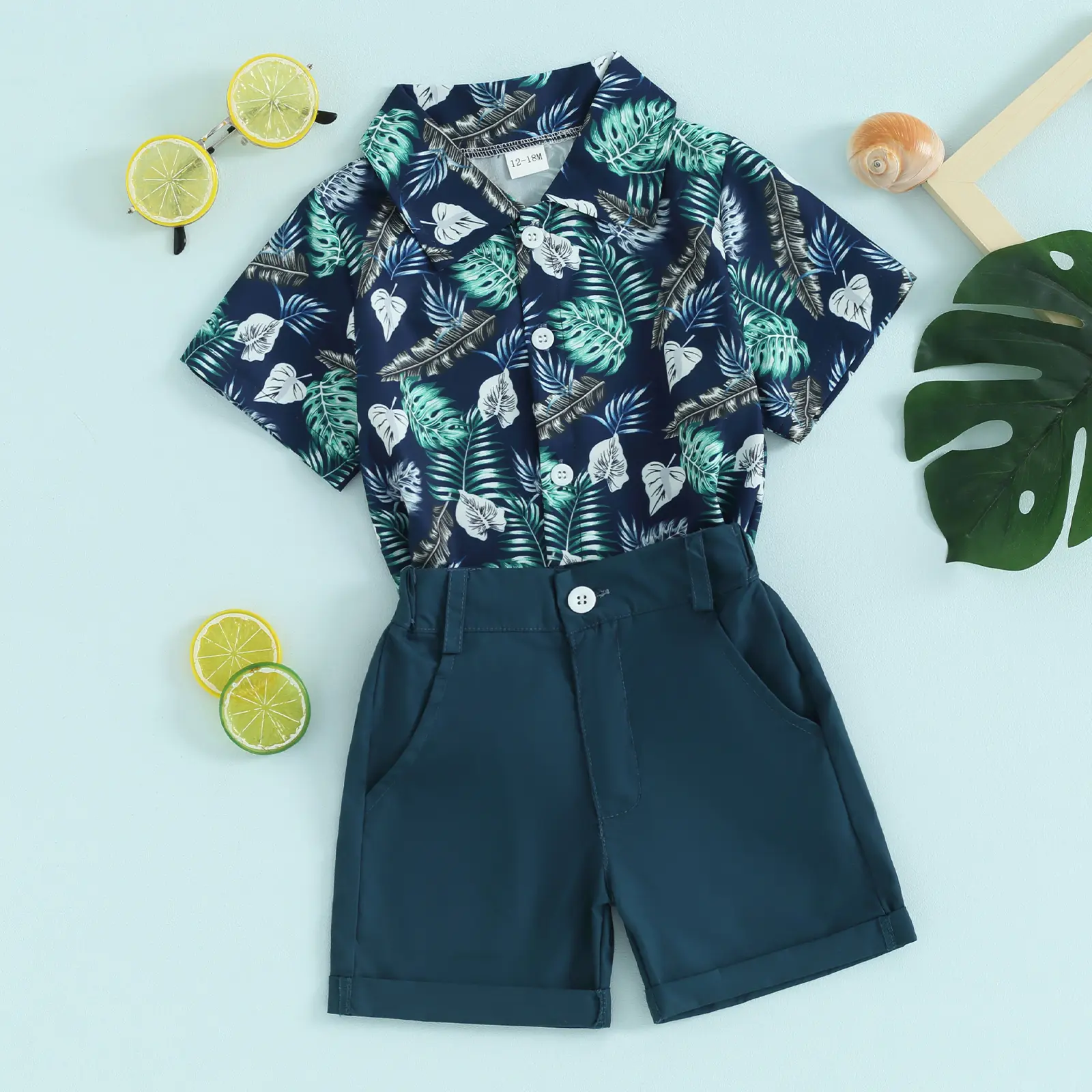 Baby Kids Boys Shorts Set, Short Sleeve Tree/Leaves Print Shirt with Shorts Toddler Set Summer Outfit