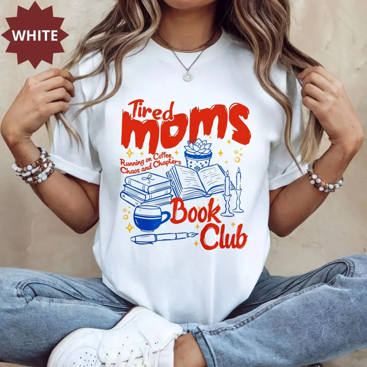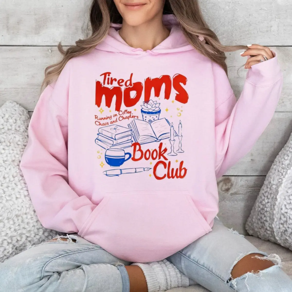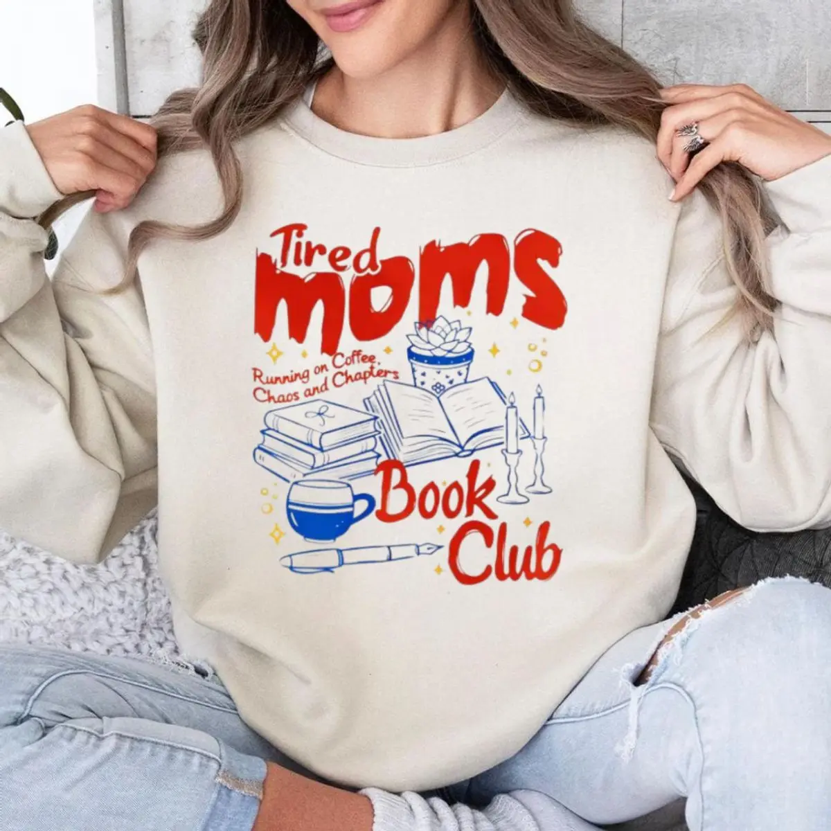 Tired moms book club shirt, retro coffee reader mom hoodie, book lover gift for mom sweatshirt, unisex sweater pullover tee