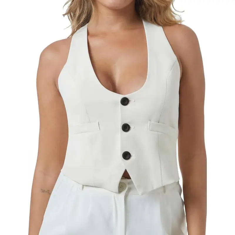 Women’s Button Up Vest Top – Dressy Casual Racerback Blazer Vest, Steampunk Waistcoat Jacket