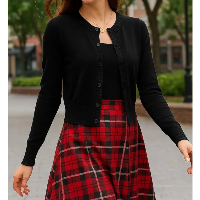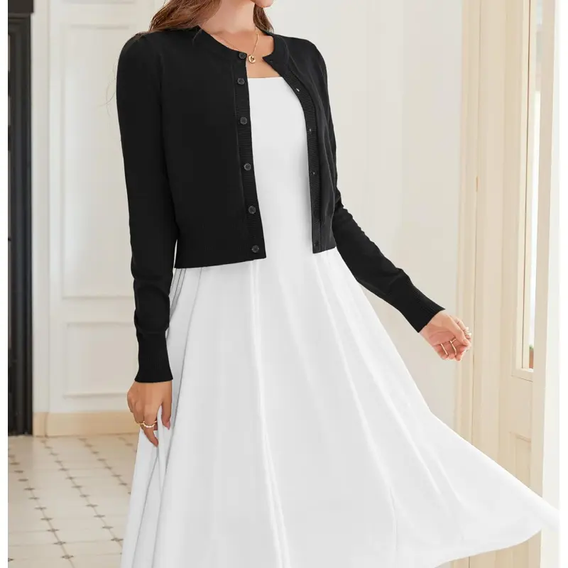 Cropped Cardigan Bolero Shrug for Women, Button Down Long Sleeve Knit Sweater for Dresses, for Jeans, XS to XL