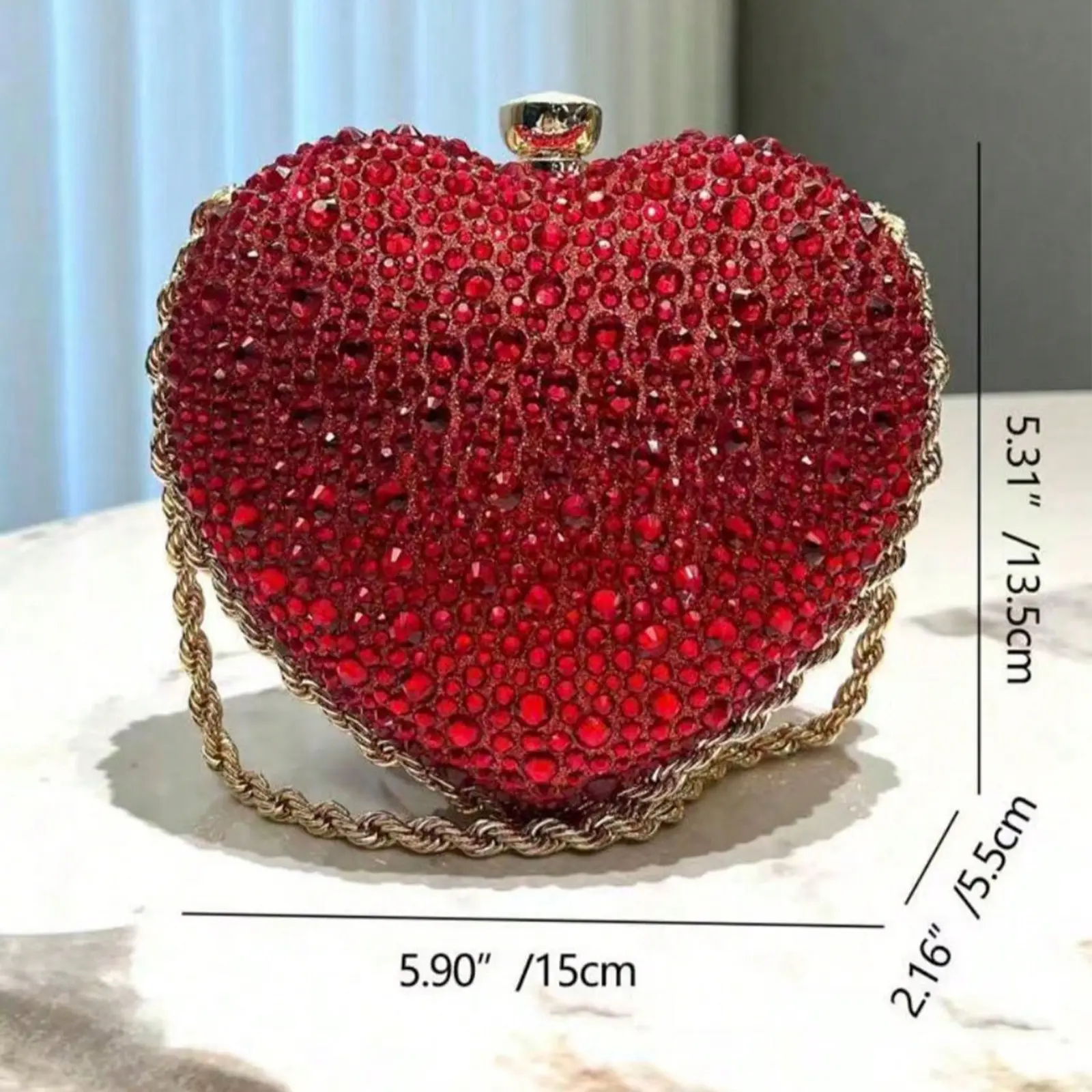 This charming clutch bag is perfect for any special occasion. Its heart-shaped design, adorned with sparkling red rhinestones, makes it a standout accessory. Ideal for evening parties, weddings, and banquets, this bag adds a touch of glamour to your outfit. It's also a great gift for women, especially for Valentine's Day.