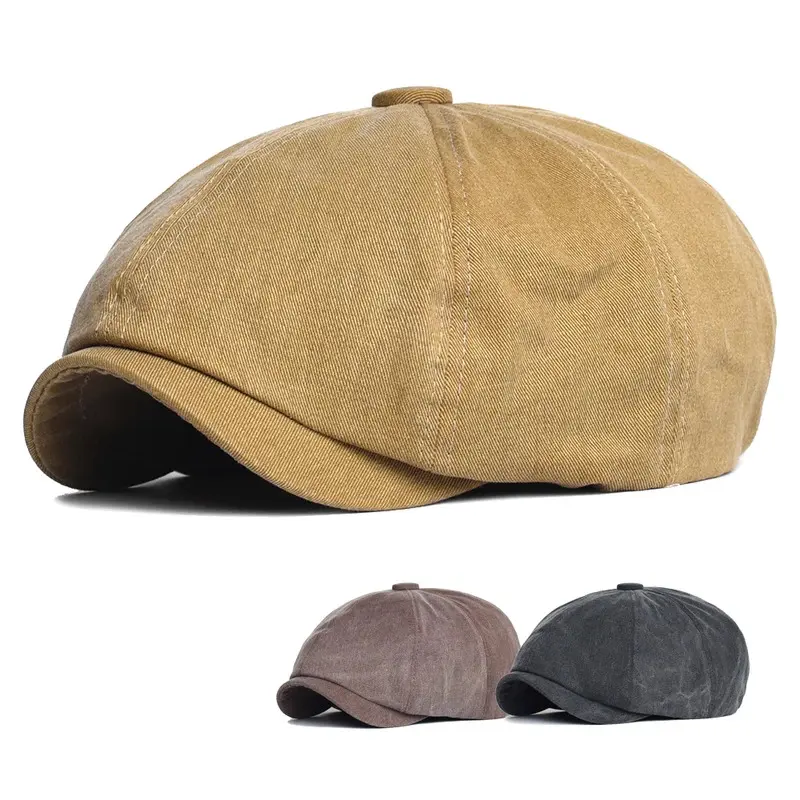 Unisex Four Seasons Cotton Newsboy Caps Men Women Octagonal Hat For Male Detective Hats Retro Flat Caps