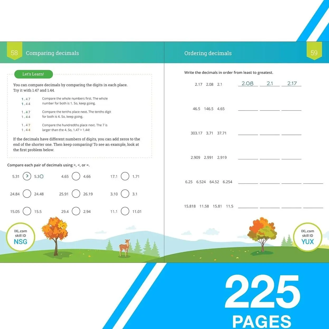 MUST-KNOW 5TH GRADE MATH SKILLS: IXL’s Ultimate 5th Grade Math Workbooks open up a wonderful world of learning for your child while guiding them through all the skills for math success for fifth graders, ages 10-11. Give your child the gift of confidence in math and help them learn essential 5th grade topics, such as multiplication, long division, decimals, fractions, geometry, measurement, algebra prep, graphing, and metric units!