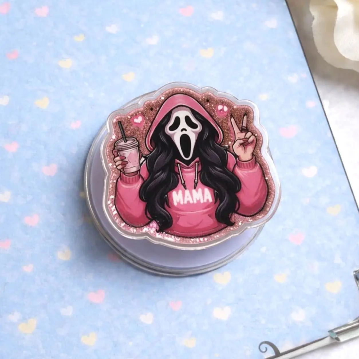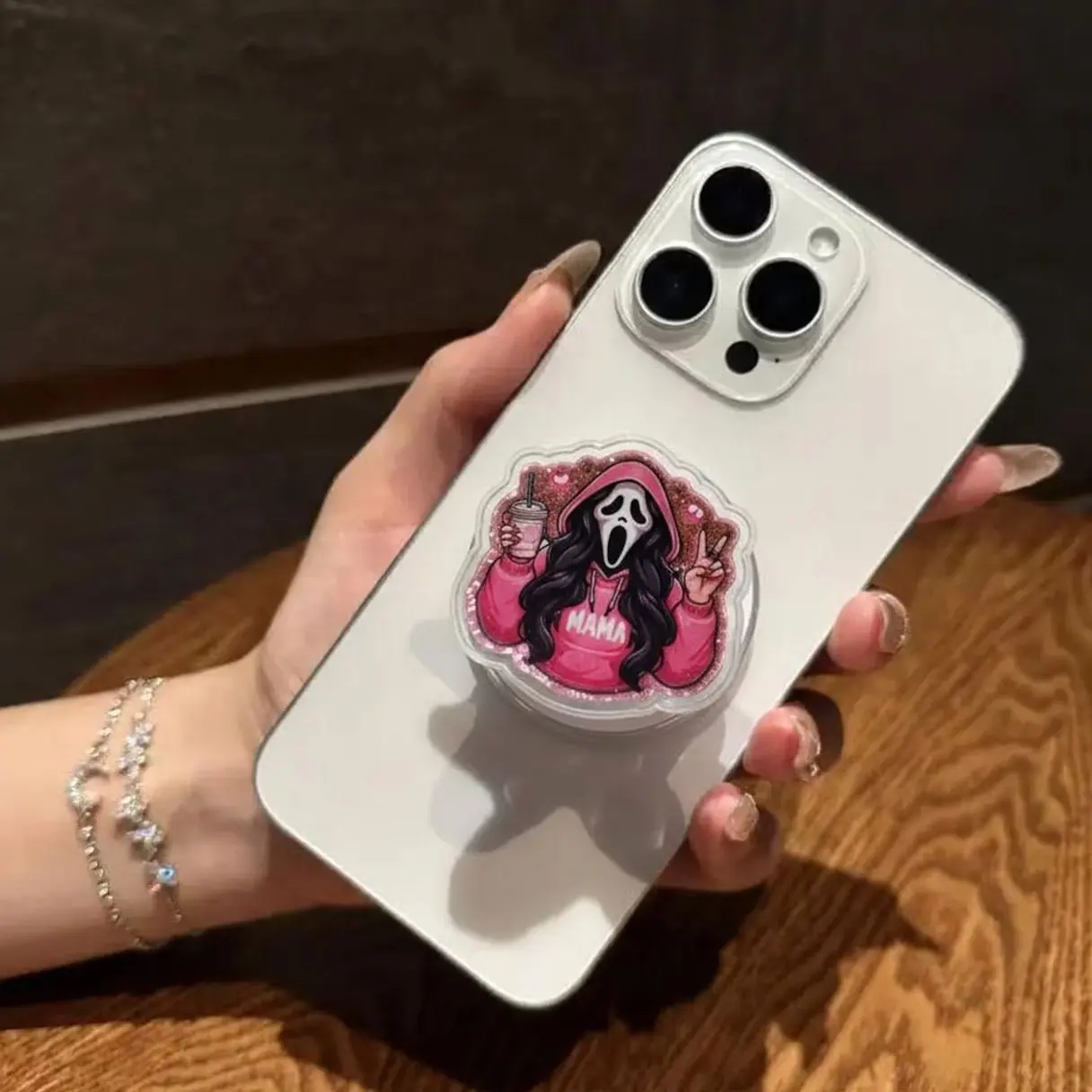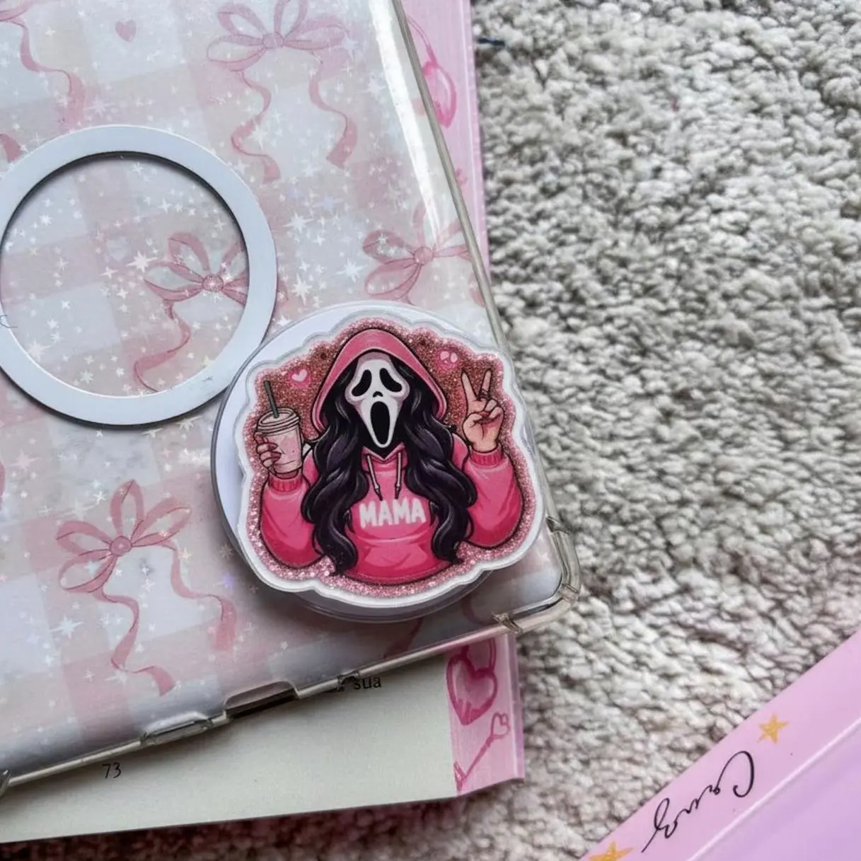 Coquette Ghost Mama MagSafe Phone Grip: Cute Spooky Pink Aesthetic Magnetic Phone Holder, Halloween Funny Mom Gift, Phone or Kindle Popgrip