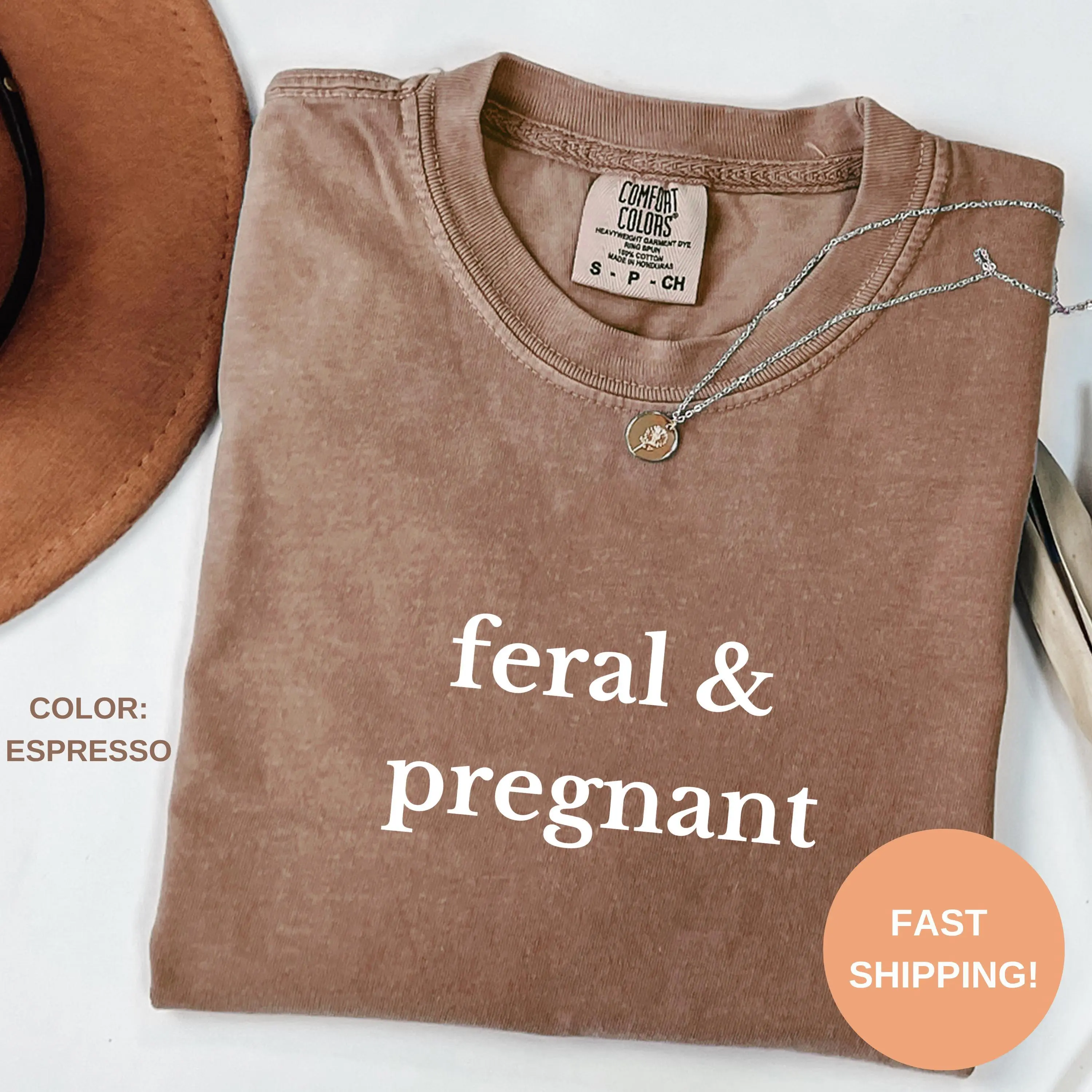 Comfort Colors® Feral & Pregnant T-shirt, Pregnancy Announcement Tee, Baby Reveal Shirt, Expecting Mom Sweatshirt, Mother's Day Gift