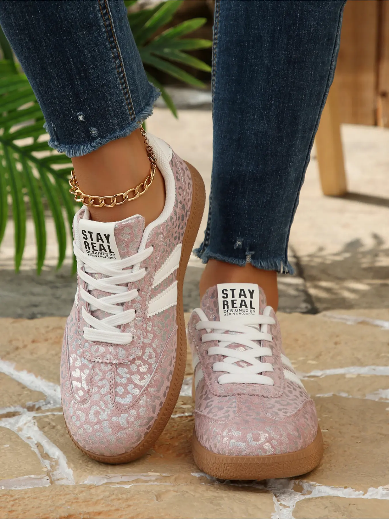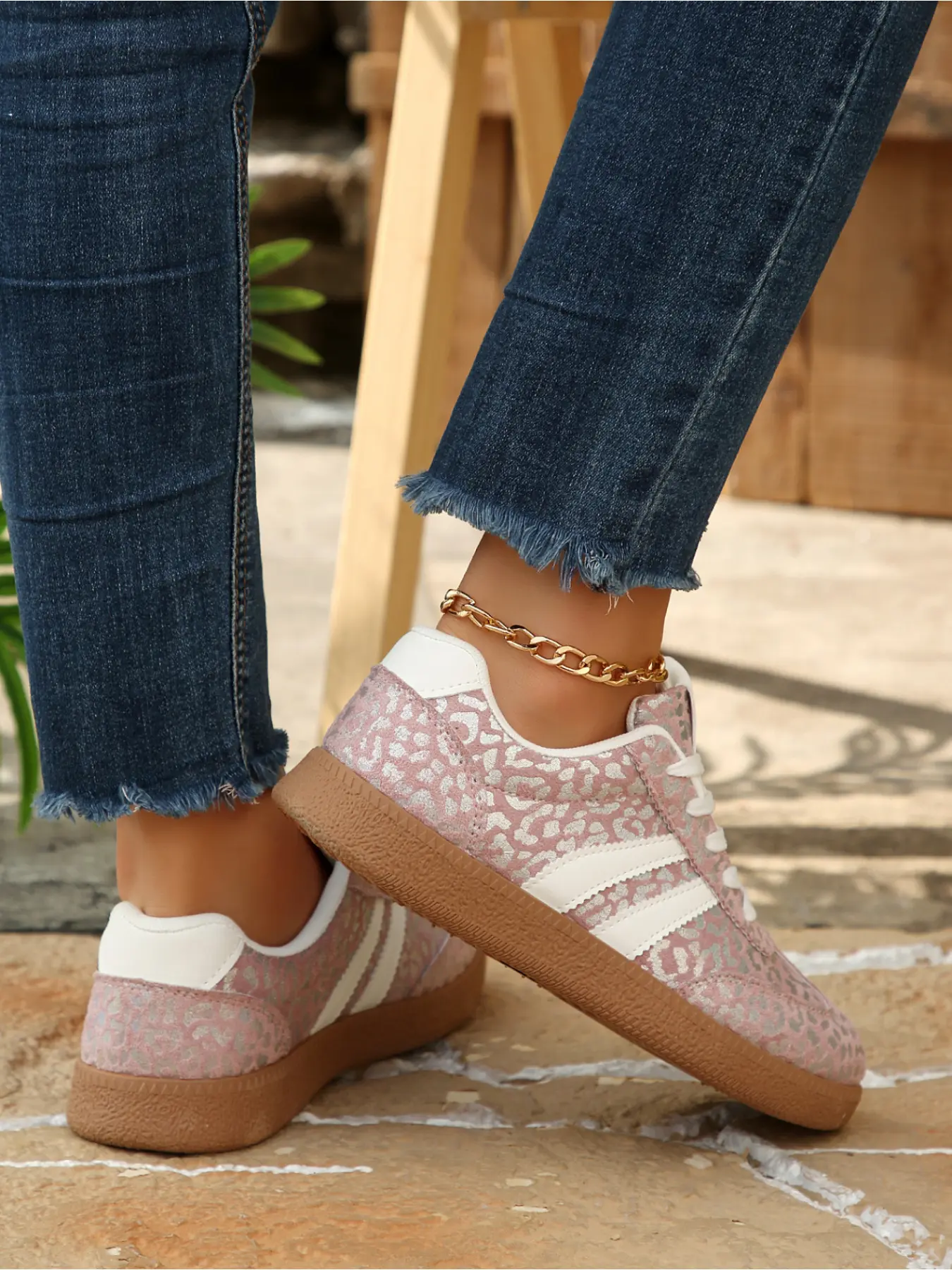 Vintage Leopard Print Sneakers, Pink/Blue, Comfortable Shoes for Commute & Shopping