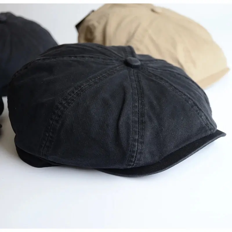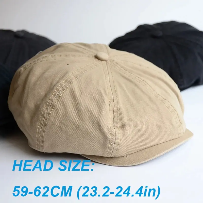 Men Big Head Newsboy Cap Peaky Hat Vintage Casual Cotton Cap Solid Berets England Visor Big Gatsby Flat Hat Detective Hats