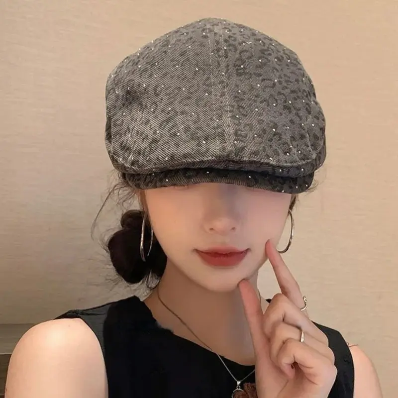 HT4874 Berets Shiny Spring Autumn Hat Men Women Leopard Artist Painter Beret Hat Male Female Ivy Flat Cap Adjustable Beret Caps