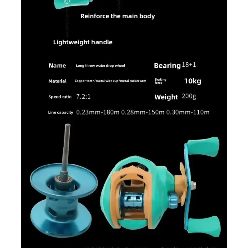 Green Macaron Baitcasting Reel, Full Metal Spool, Long Cast Anti-Backlash Versatile Fishing Reel