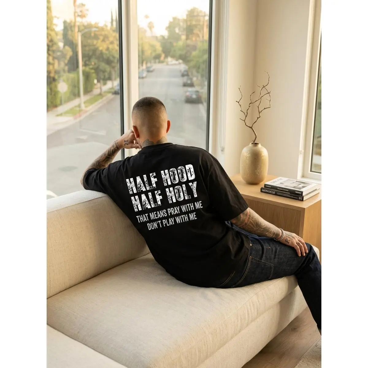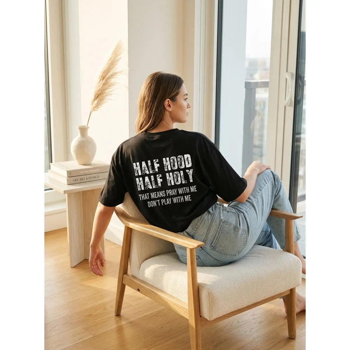 I love that it came in a plastic bag to protect the shirt even more from damage or harm. The font is up to pair. Seems a little bigger size wise but great shirt, wish there was a Bible verse on it about how “I love Jesus”. 5 ⭐️ Product quality: Great, semi see through though..