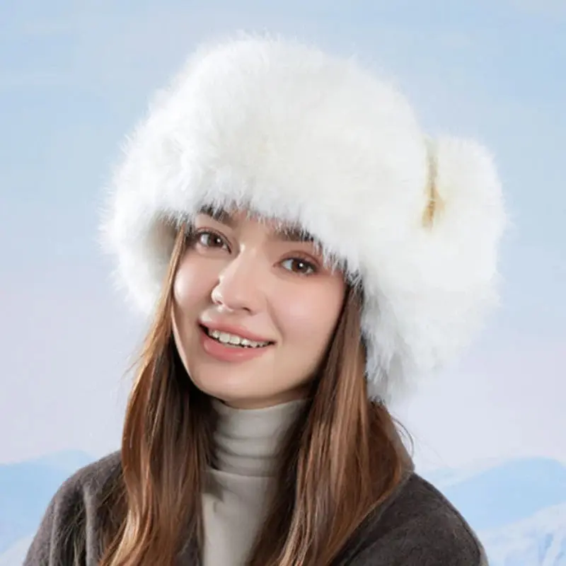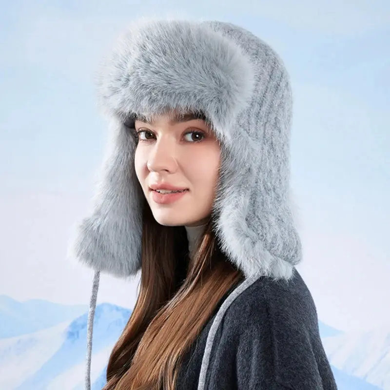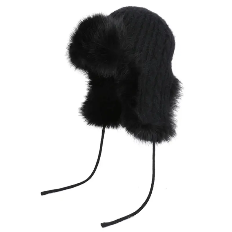 HT4895 Russian Hat New Thick Warm Fluffy Fur Hat Knitted Snow Ski Trapper Earflap Cap Women Winter Hat Ushanka Female Bomber Hat