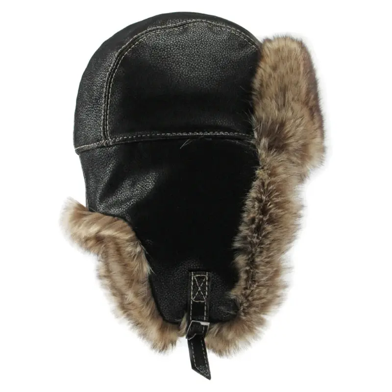 HT4241 Bomber Hat New Thick Warm Men Women Russian Fur Hat Male Windproof PU Leather Ski Trapper Earflap Cap Winter Hat Ushanka