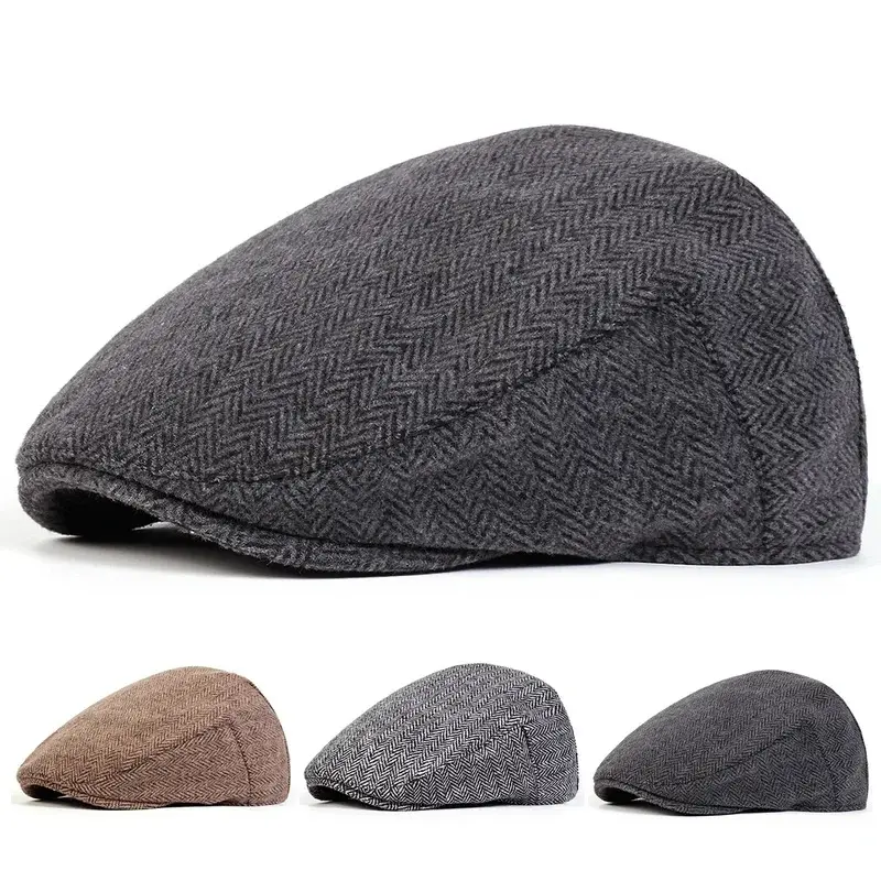 Unisex Furry Herringbone Grid Newsboy Caps British Painters Hats Spring Winter Flat Peaked Cap Hip Hop Berets