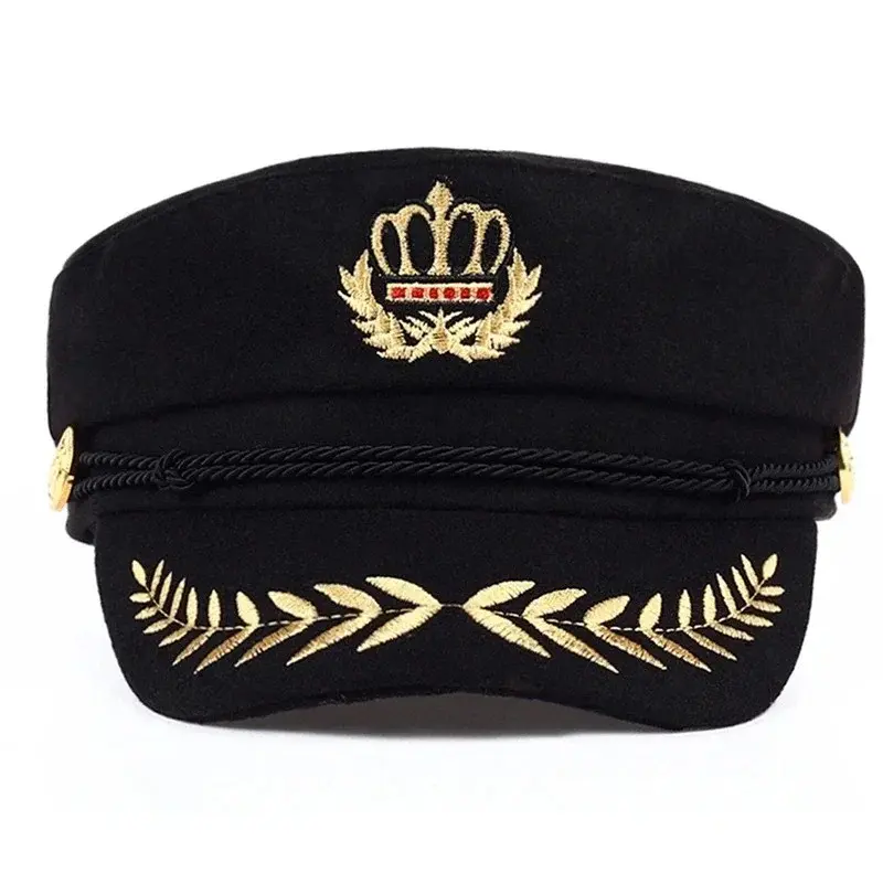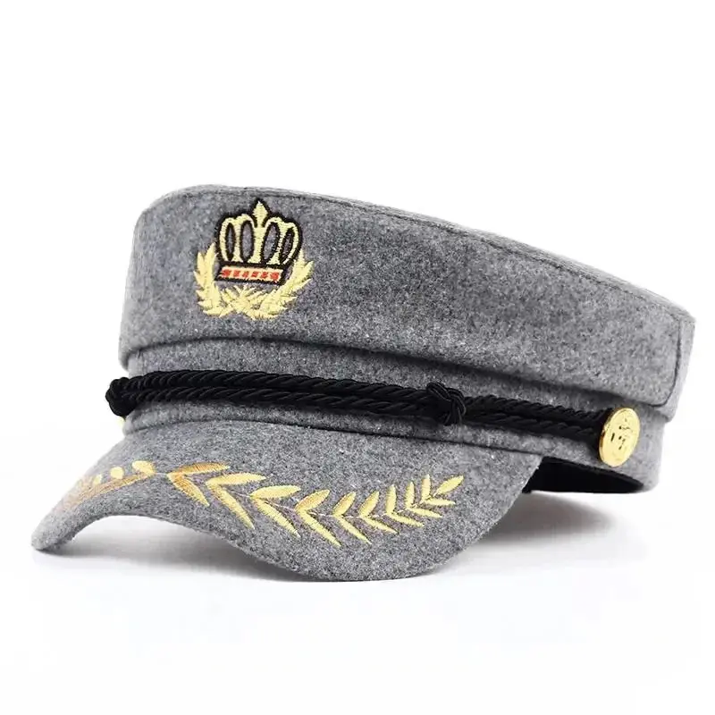 Unisex Crown Wheat Ear Navy Hat Spring Autumn Sailor Hats Men Flat Top Captain Military Caps Women Large Black Beret Caps
