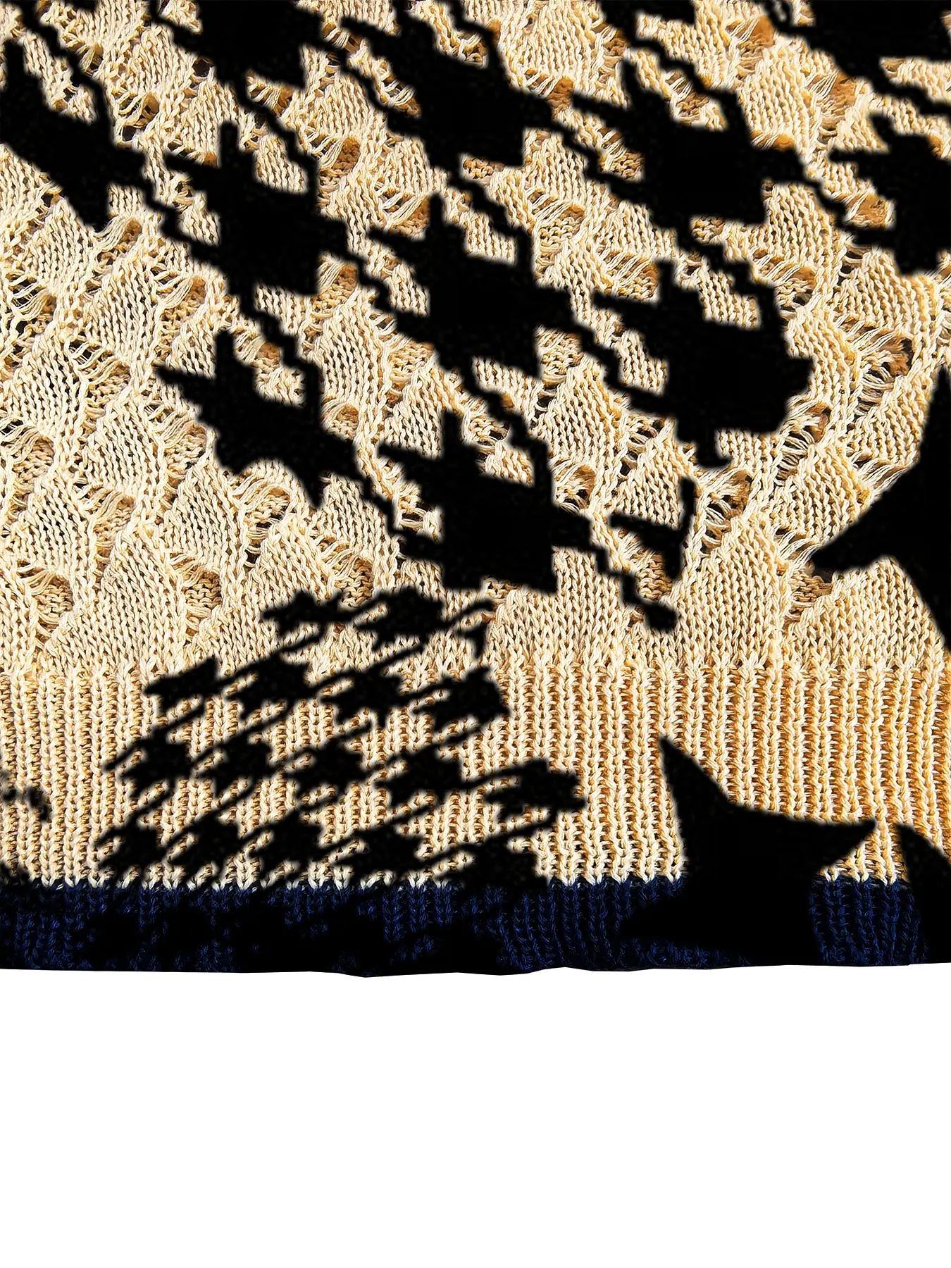 Women's Vintage Leopard Patchwork Knit Vest, Round Neck Sleeveless Sweater, Casual Everyday Breathable Knitwear for Spring Summer Fall