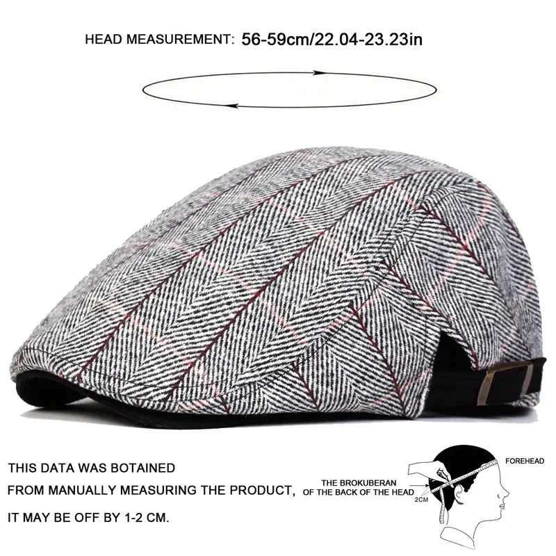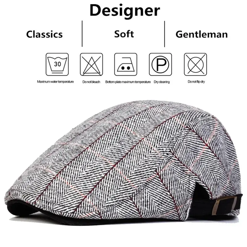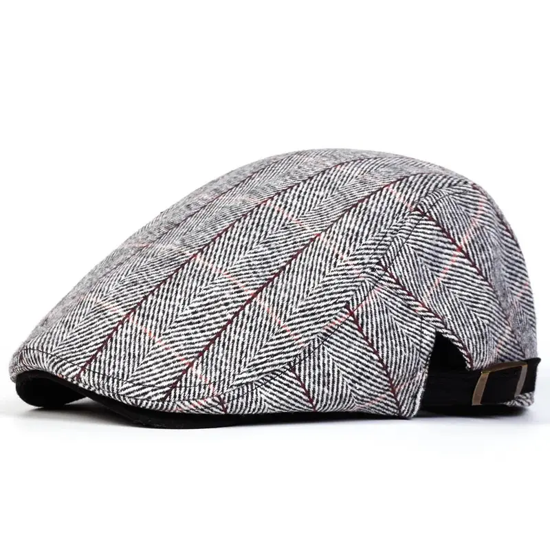 Men Retro Herringbone Grid Newsboy Caps British Painters Hats Side Buckle Adjustable Flat Cap Hip Hop Berets