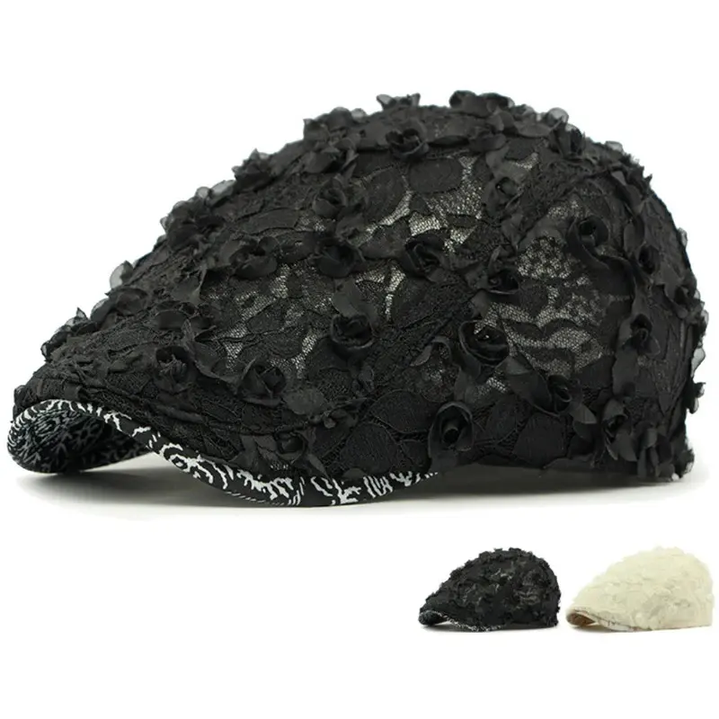 HT4784 Beret Cap Spring Summer Lace Mesh Cap Men Women Vintage Floral Artist Painter Beret Hat Male Female Ivy Flat Cap Berets