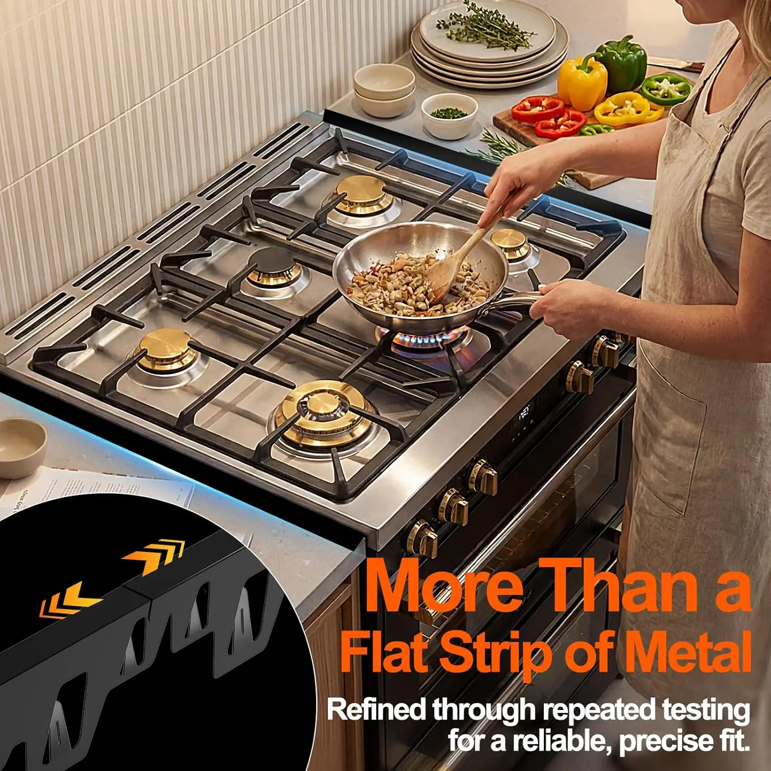 Keep your kitchen clean and clutter-free with this 2-pack stainless steel stove gap cover set. Designed to seal the space between your stove and countertop, it prevents crumbs, spills, and debris from falling into hard-to-reach gaps, saving you time and effort on cleaning.