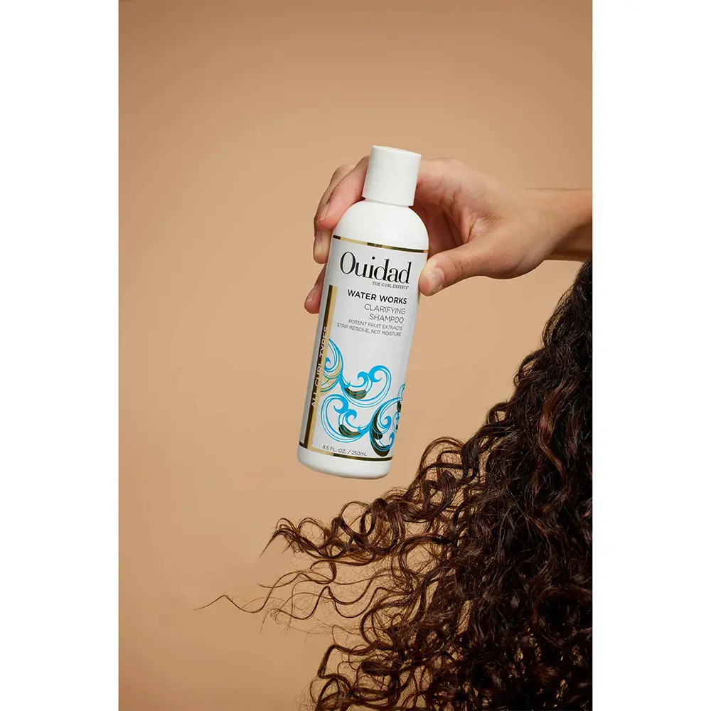 Deeply cleanse stubborn buildup and impuritiesOur Water Works Clarifying Shampoo works extra hard at cleansing stubborn buildup and impurities. The powerful, chelating formula breaks down and removes any residue while still helping curls maintain their moisture. Curls are left clean and ready for styling. Fragrance: Tangerine, Orange, Green