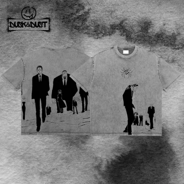 5. Retro Phantom Troupe Genei Ryodan Anime T-Shirt – Hunter x Hunter Graphic Tee Washed – Double Sided Print Oversized Acid-Washed Heavyweight Cotton T-Shirt – Unisex Anime Tee, Perfect Gift for Anime Fans and Lovers Menswear Tops