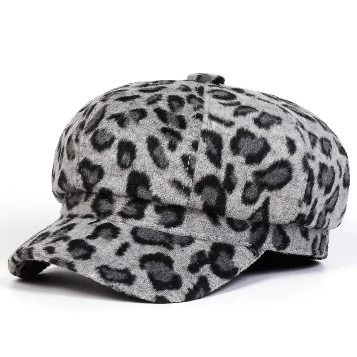 Unisex Plush Leopard Print Personality Newsboy Hat Spring Autumn Retro Beret Hats Wild Casual Hats Octagonal Cap