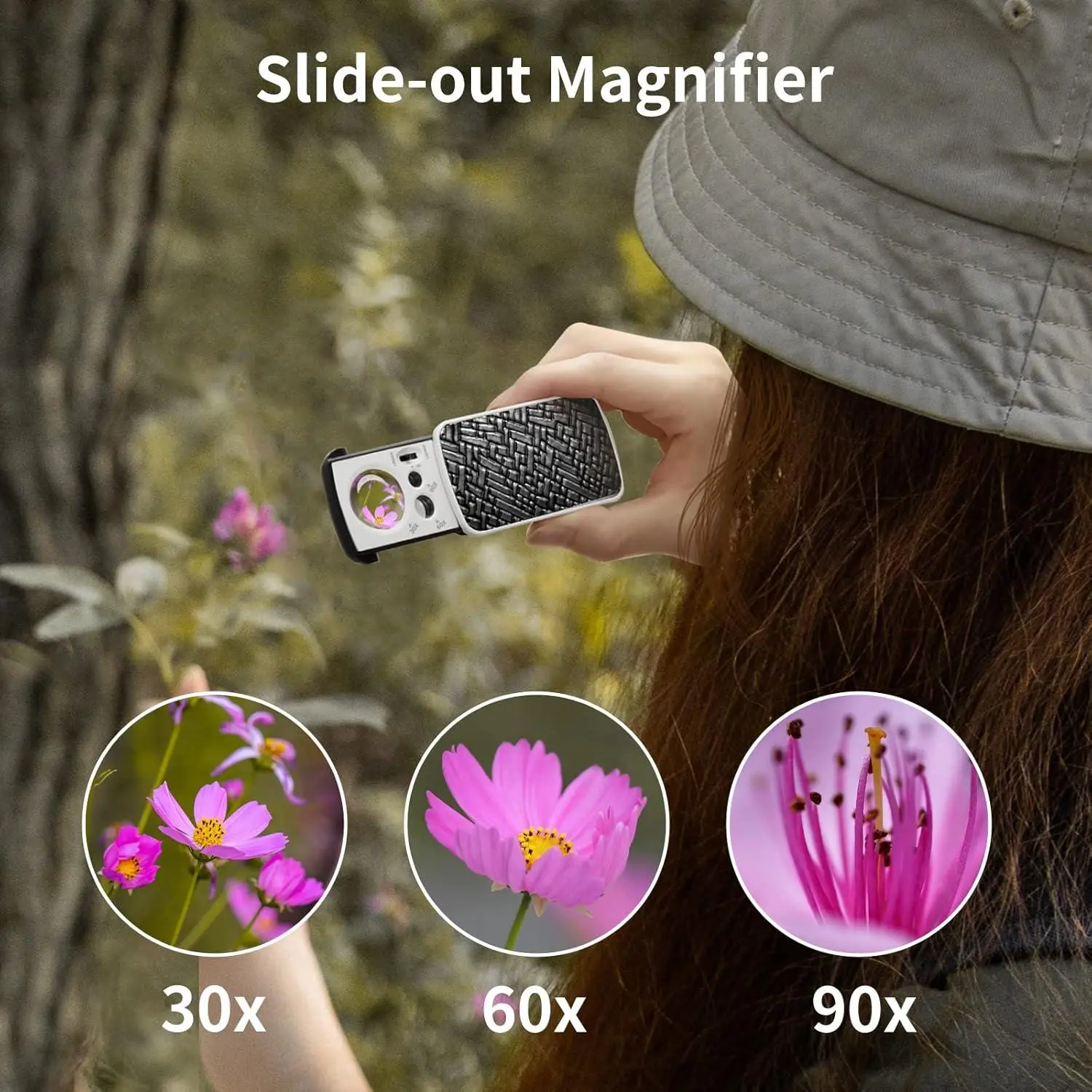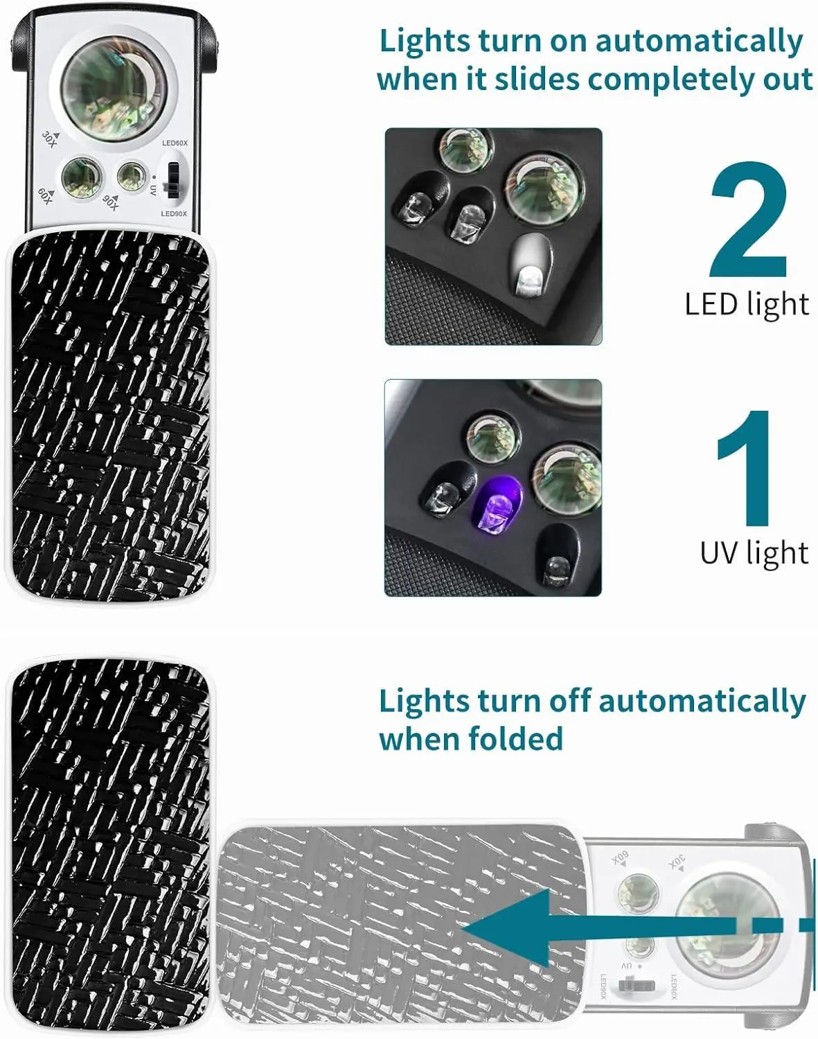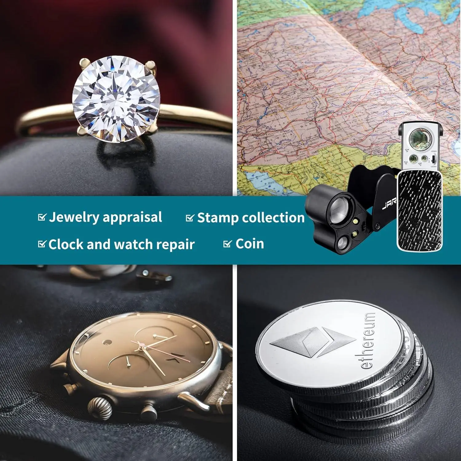 JARLINK 2 Pack Jewelers Loupe, 30X 60X 90X Illuminated Jewelers Eye Magnifier and Magnifying Glass Loop with UV Black Light and Bright LED Light for Gems, Jewelry, Diamond, Coins, Stamps (Black)
