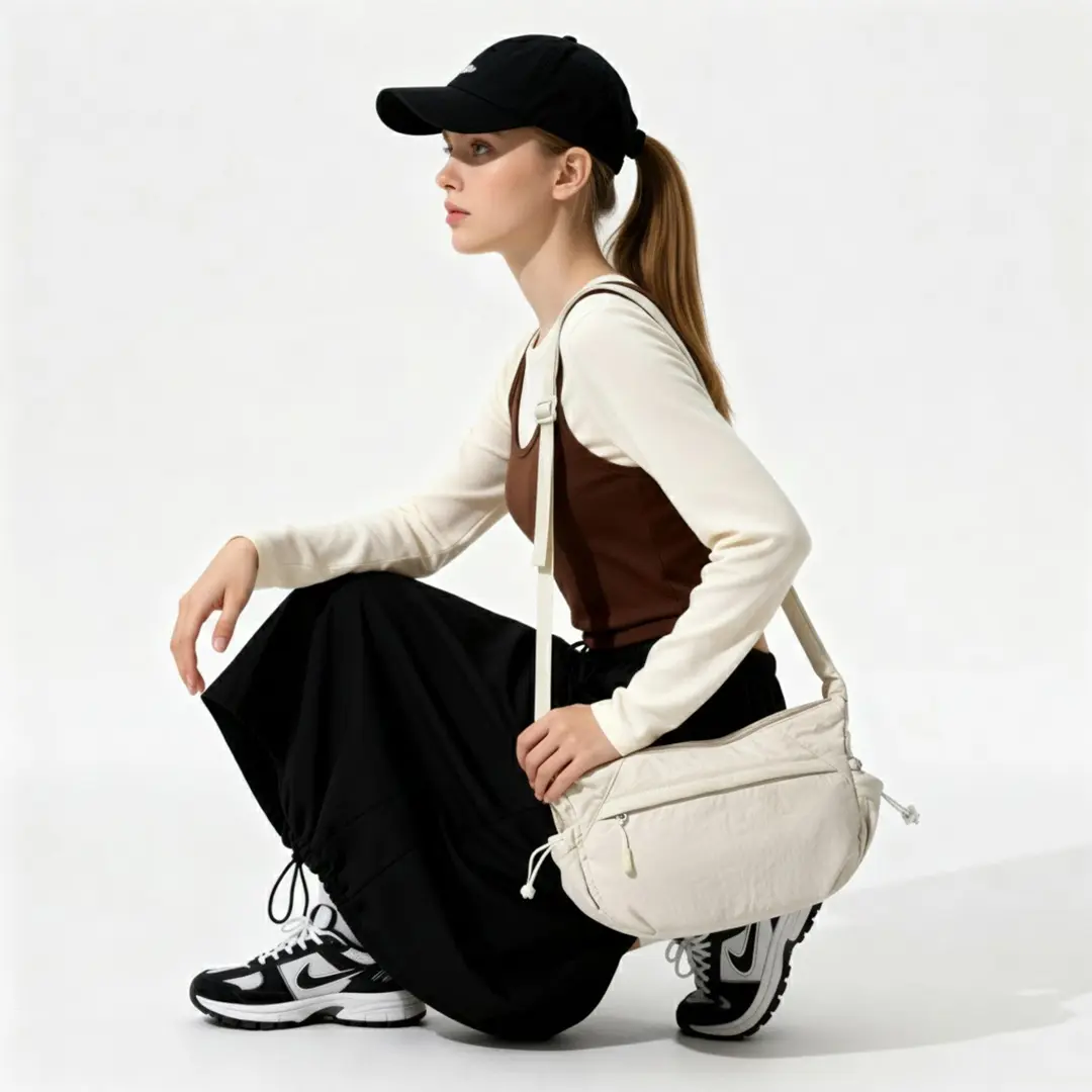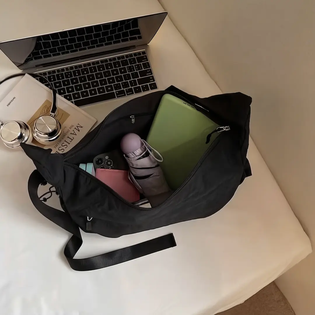 Weighing only 0.2kg (lighter than a water bottle!), this bag feels like nothing on your shoulder, but has tons of space for all your daily must-haves: phone, wallet, laptop, makeup, you name it. The smooth zippers, adjustable strap, and side drawstring design keep your stuff secure and organized, while the soft nylon fabric is durable enough for commutes, workouts, or weekend adventures.