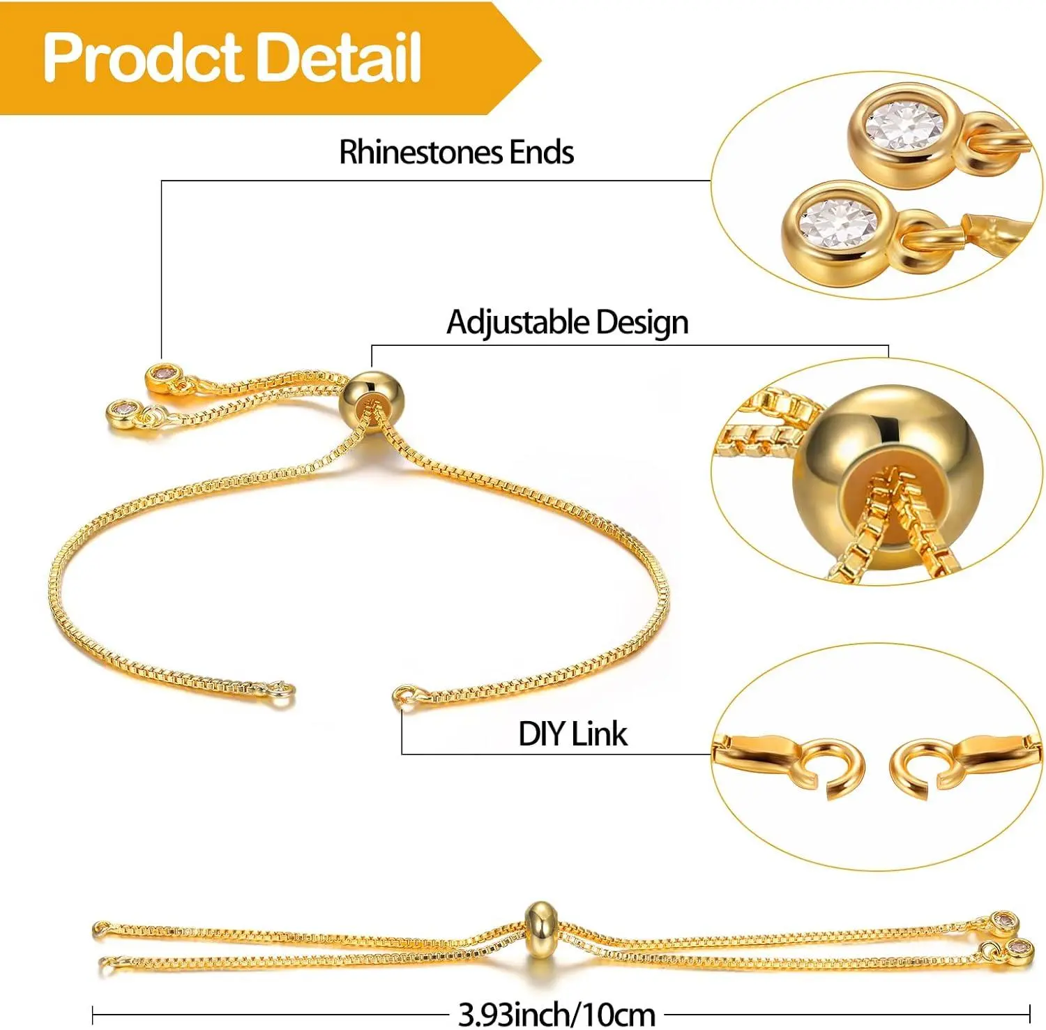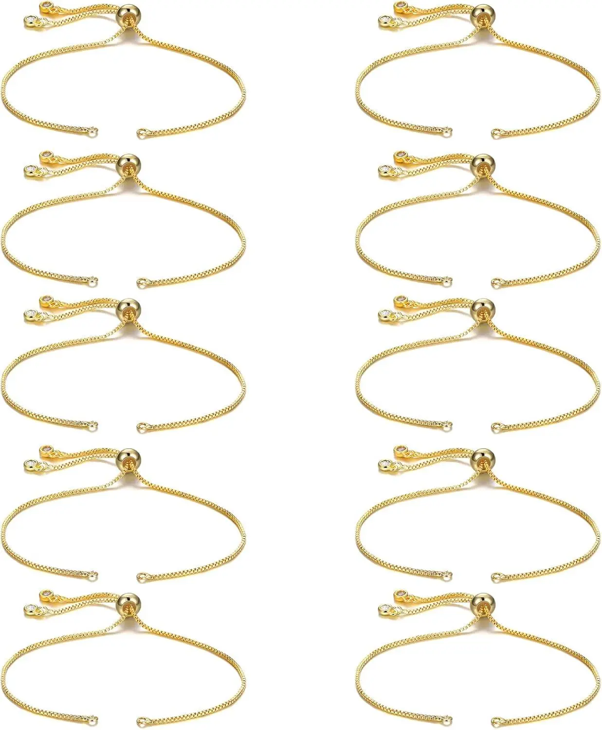 Sureio 10 Pieces Adjustable Slider Bracelet for Jewelry Making Bracelet Chains for DIY Jewelry Making Findings Extender Chains with Rhinestones Ends for Woman Girl(Gold)