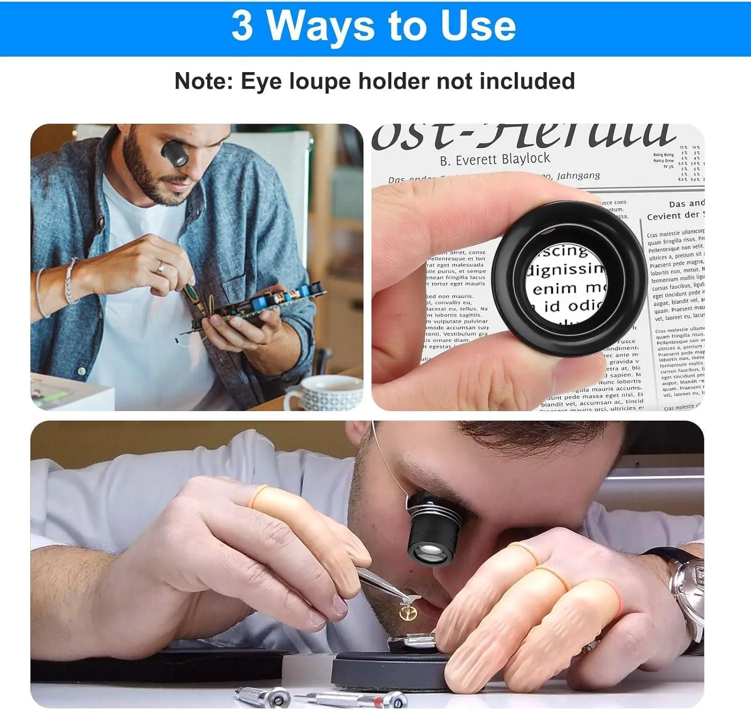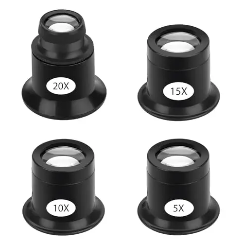 SUNJOYCO 4 PCS Watchmaker Loupe, 5X 10X 15X 20X Eye Loupe, Monocle Magnifier, Jewelers Loop Magnifier, Magnifying Loop, Jewelry Magnifying Glass Monocular for Watch Repair, Gems, Coins, Stamps