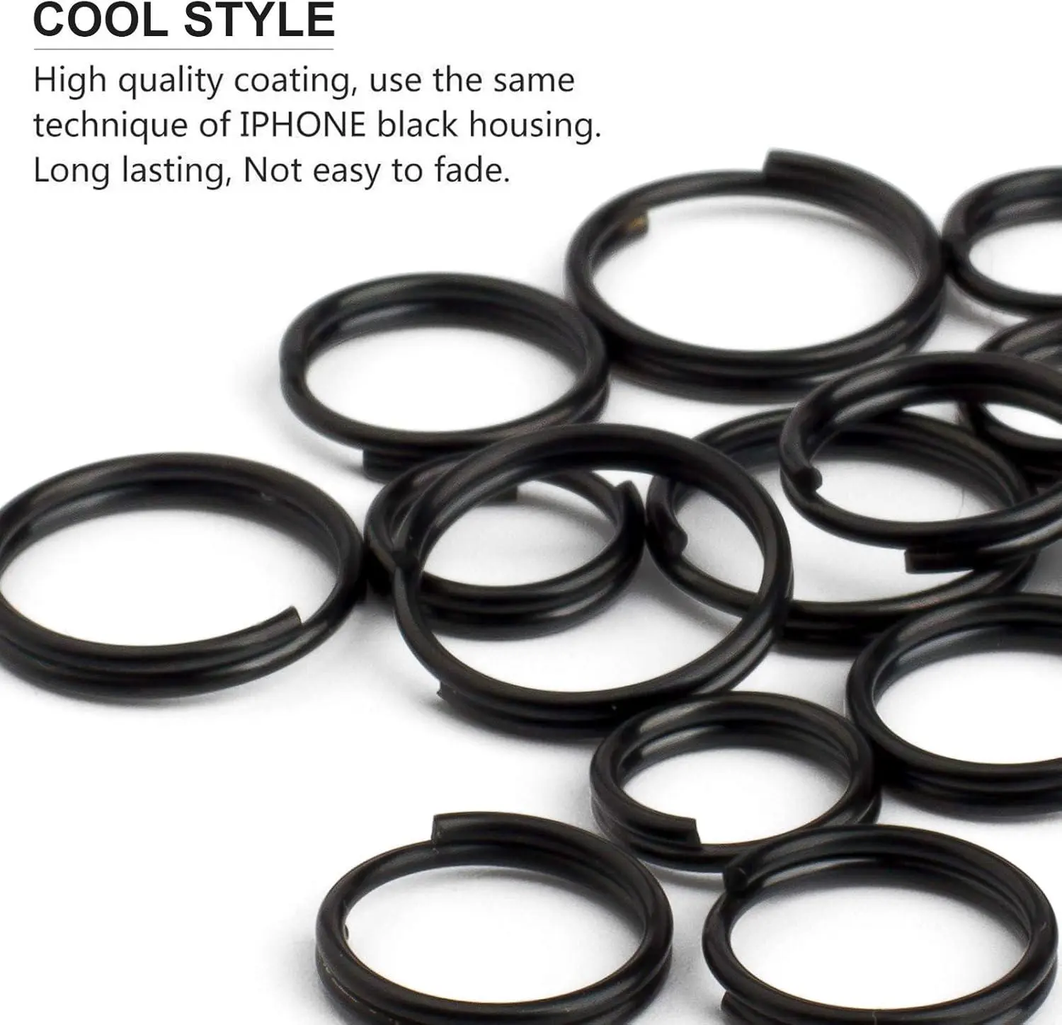 FEGVE Titanium Key Rings Split Rings, Small Keyrings, Jump Rings for Necklaces, Keys, Jewelry Attachment - 15pcs Mix 10/12/14mm (Black)