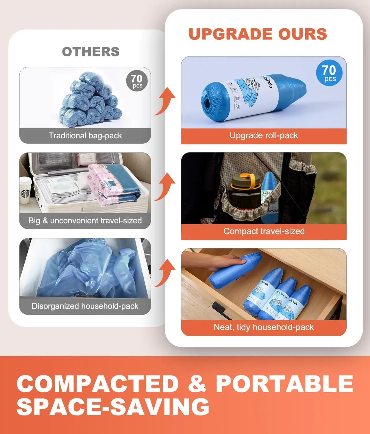 70 Pack Disposable Shoe Covers Non Slip Waterproof, CPE Booties with Compact Tear Off Roll, Indoor Shoe Covers for House Cleaning, Open House, Construction, One Size