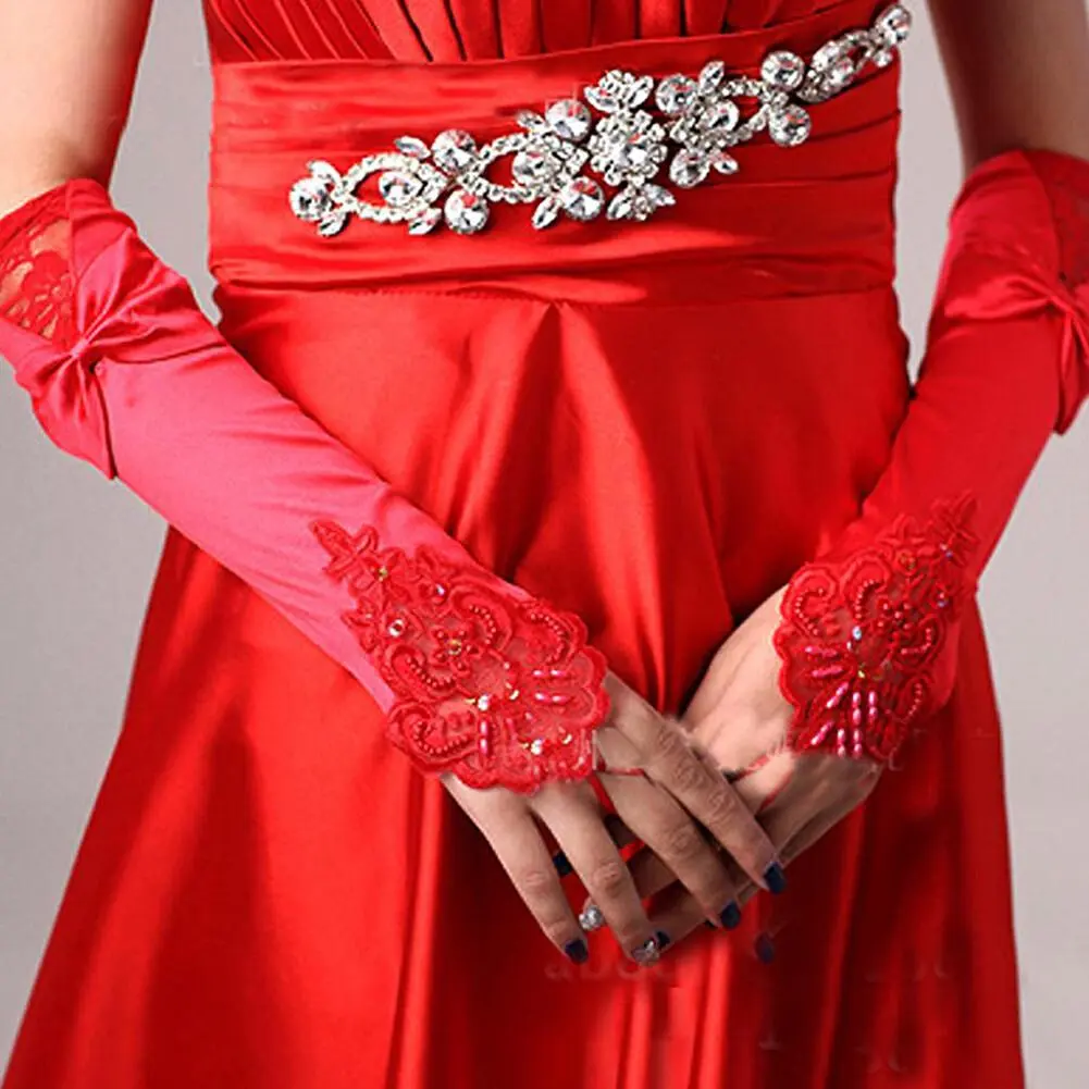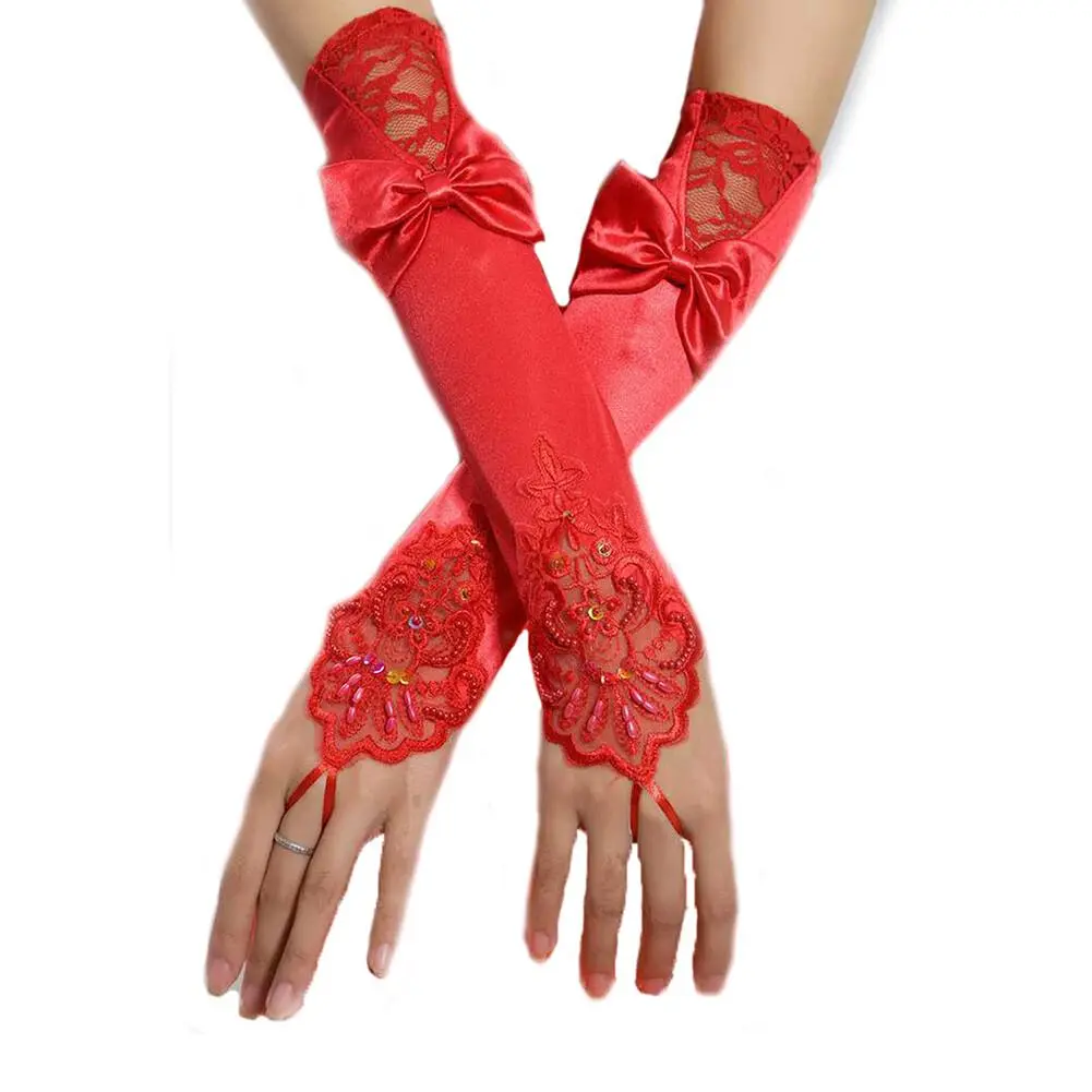 Long Evening Gloves Ladies Womens Satin Lace Gloves Classic Party Decoration Accessories for Opera Evening Party Dance Wedding